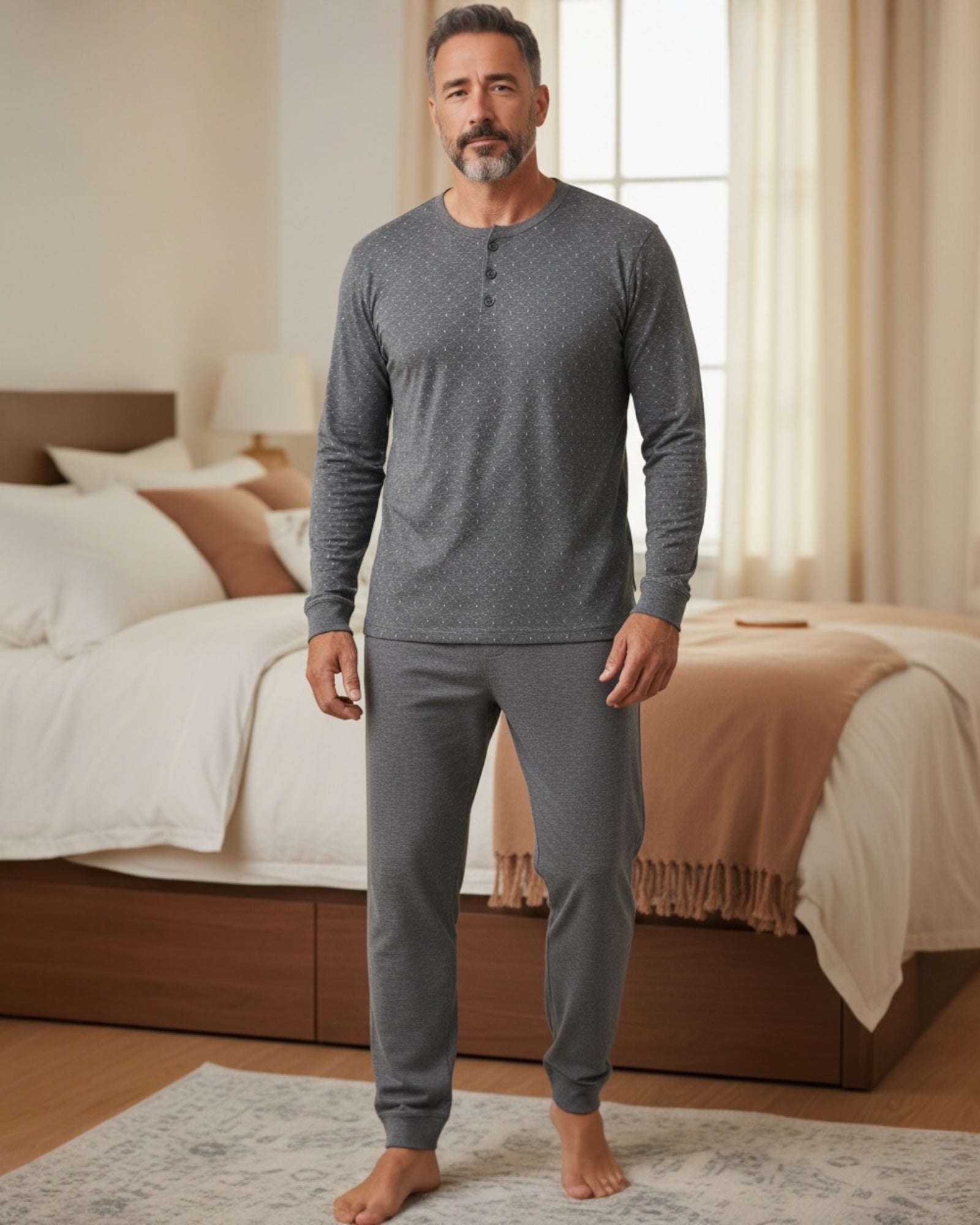 🌙 Maglia serafino a manica lunga – Modello classico con bottoncini e taschino sul petto, comfort e stile anche a casa