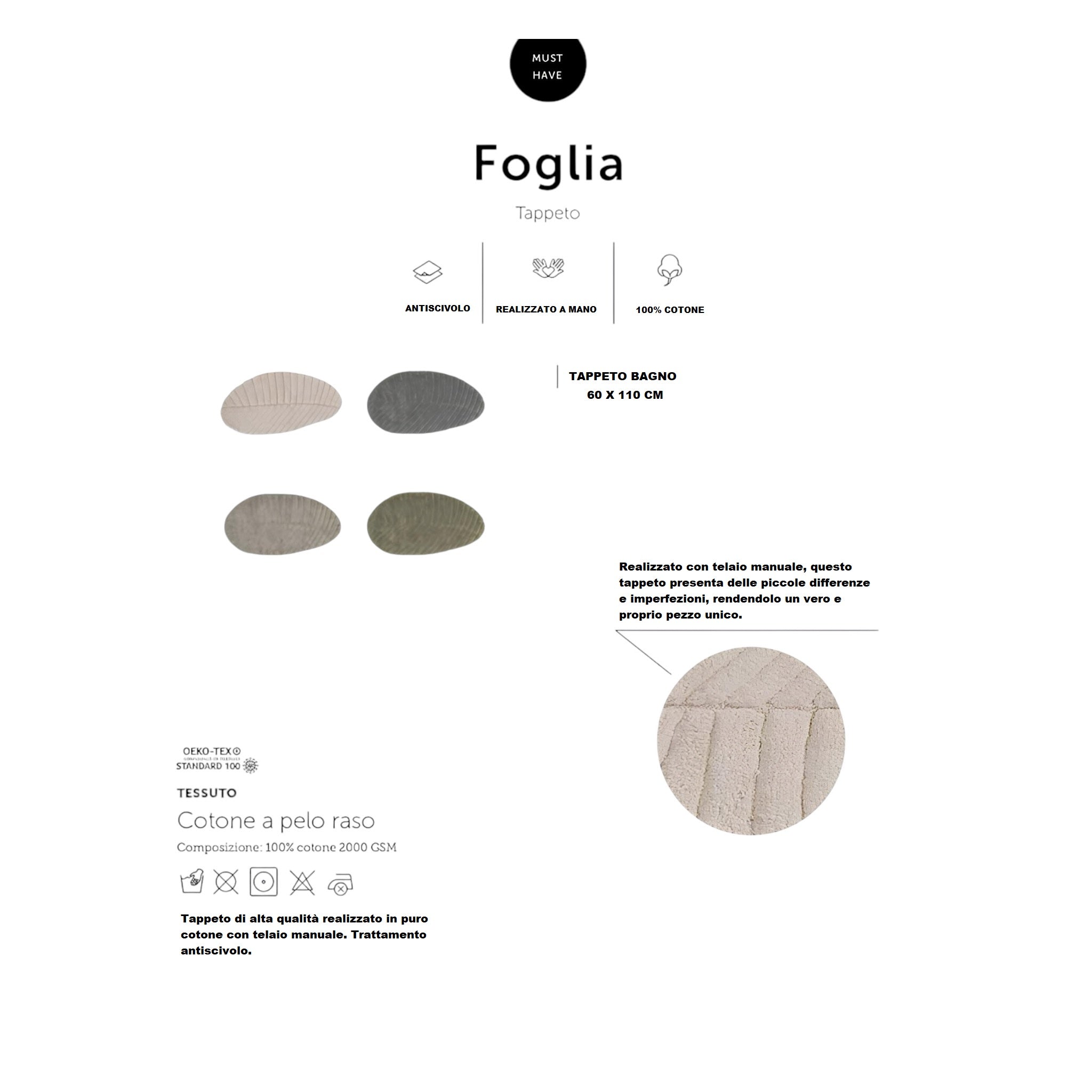 Tappeto bagno di Maison Sucrèe a pelo raso in cotone fondo antiscivolo Art. Foglia