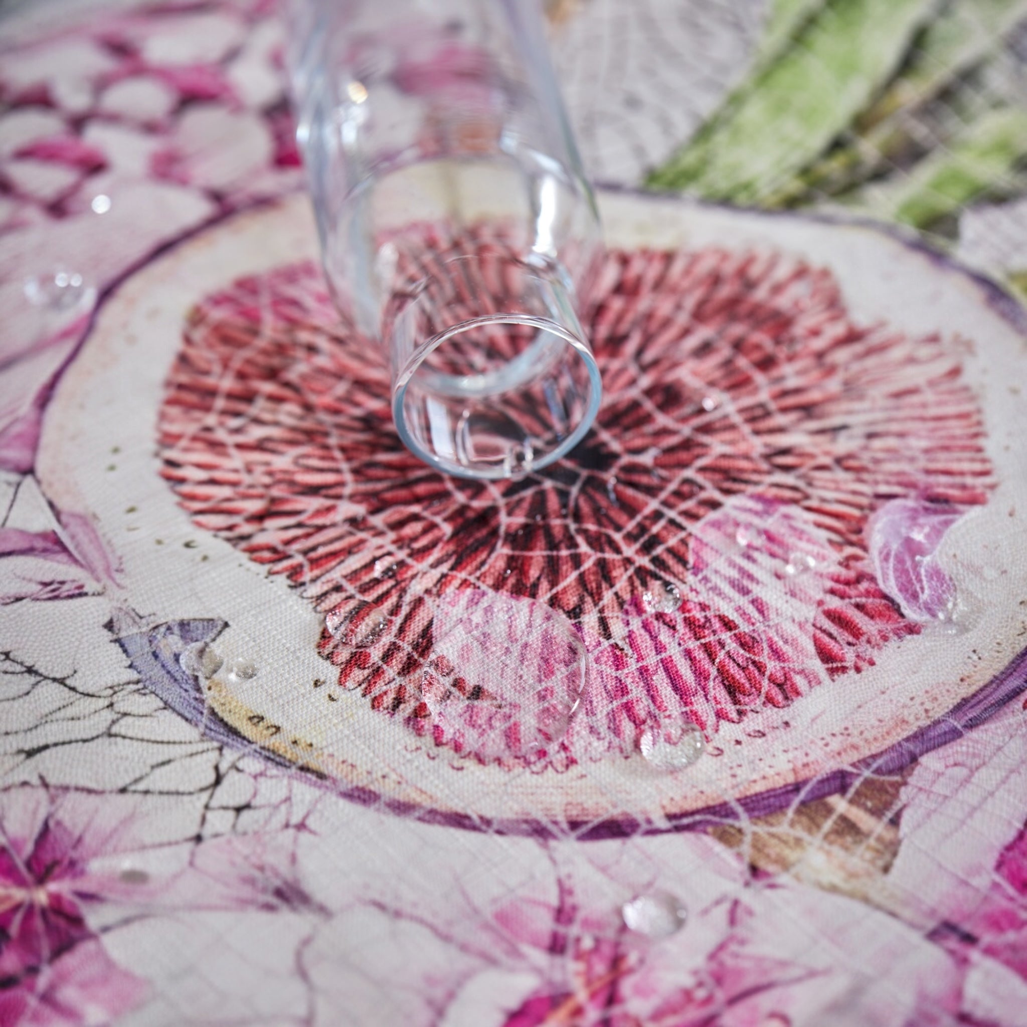 Tovaglia Antimacchia Maison Sucrée Articolo Caneva in tessuto Korin a stampe digitali, dal design fresco e raffinato.