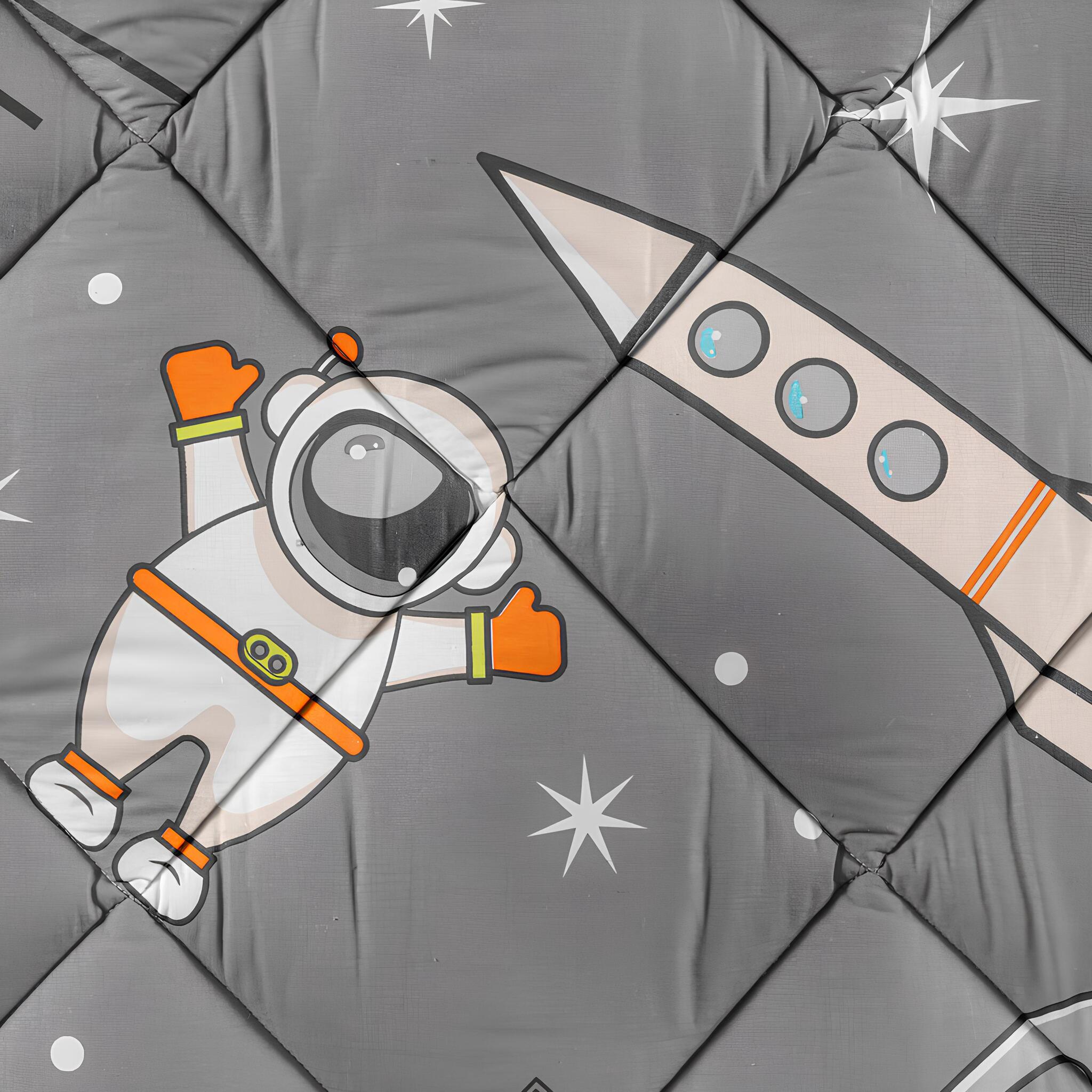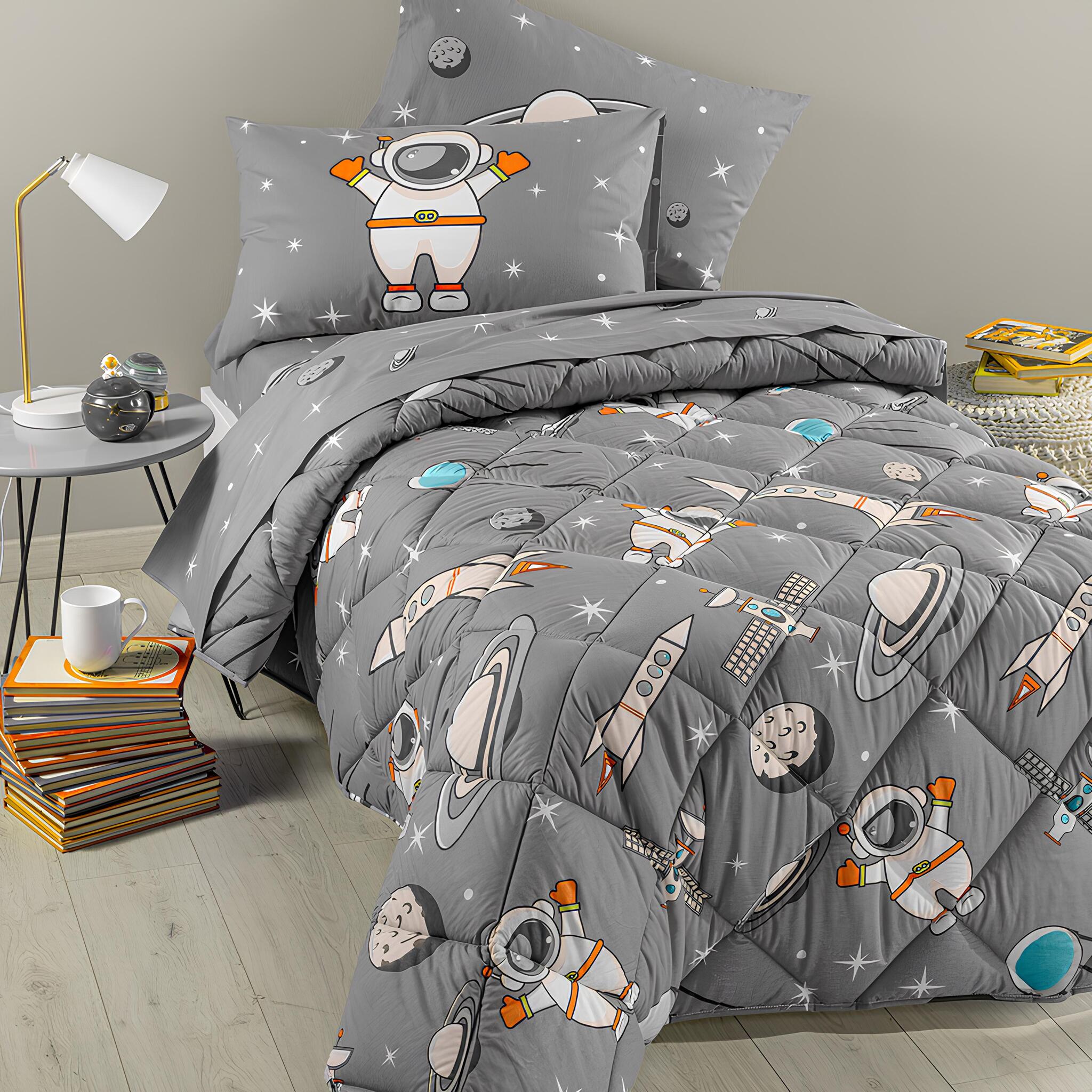 Regala ai più piccoli un viaggio tra stelle e pianeti con la trapunta invernale Spazio firmata Caleffi. Realizzata in 100% cotone e imbottita con fibra anallergica da 300 gr/m², è l’ideale per garantire comfort e calore nelle notti fredde. La trapuntatura a rombi mantiene l’imbottitura ben distribuita, evitando spostamenti. Certificata OEKO-TEX, è sicura anche per le pelli più sensibili. Disponibile nei colori blu e grigio, è perfetta per letti singoli (una piazza) grazie alle dimensioni di 165x265 cm. Un prodotto Made in Italy di qualità firmato Caleffi.