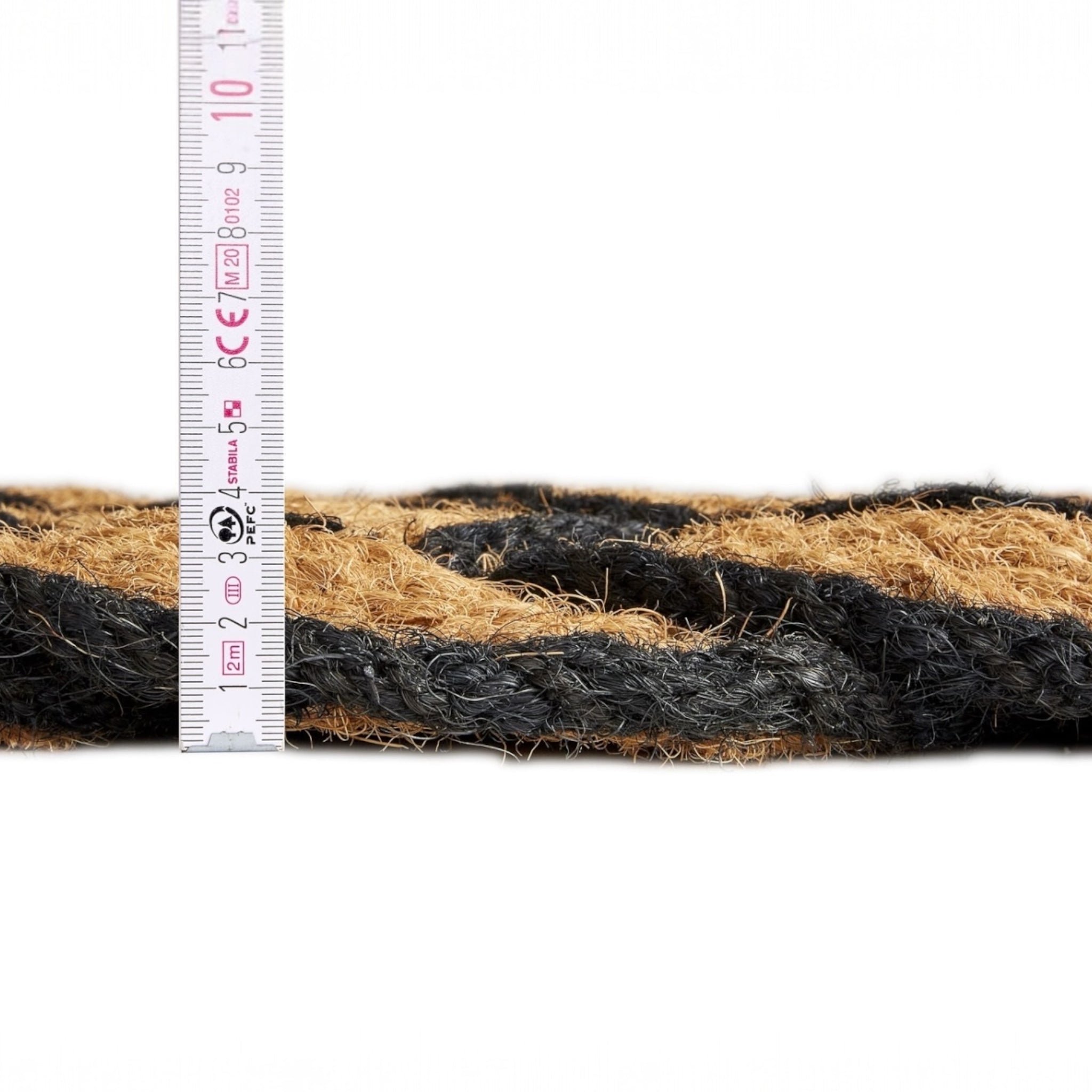 Questo tappeto da esterno è realizzato in fibra di cocco naturale antibatterica. La combinazione di colori naturali e accenti scuri aggiunge un tocco decorativo, mentre la struttura robusta lo rende resistente agli agenti atmosferici. Perfetto per l’ingresso, il balcone o il patio, offre un’accogliente protezione per le aree ad alto traffico.