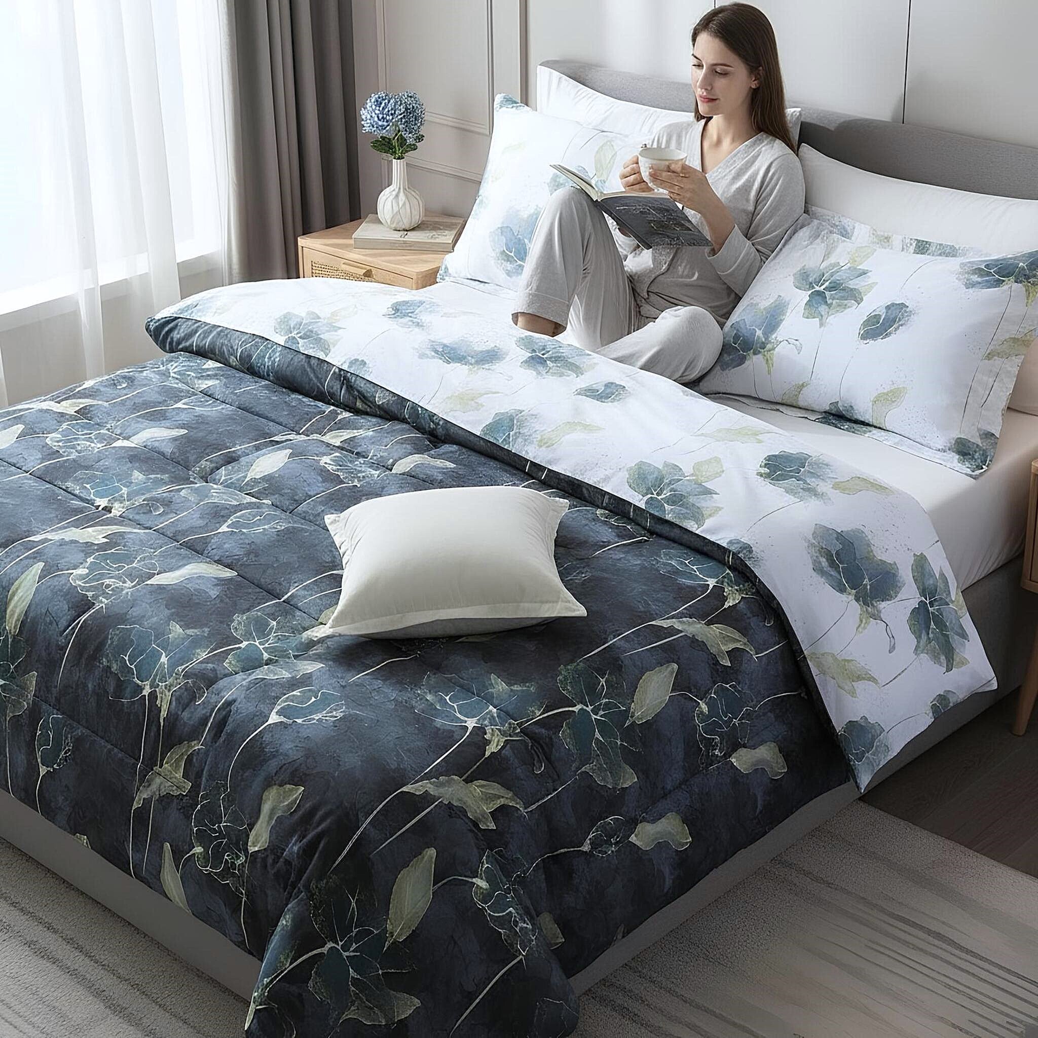 Features: Top side allover print, back in solid color sateen, 300g padding. Ideal for cold winter nights