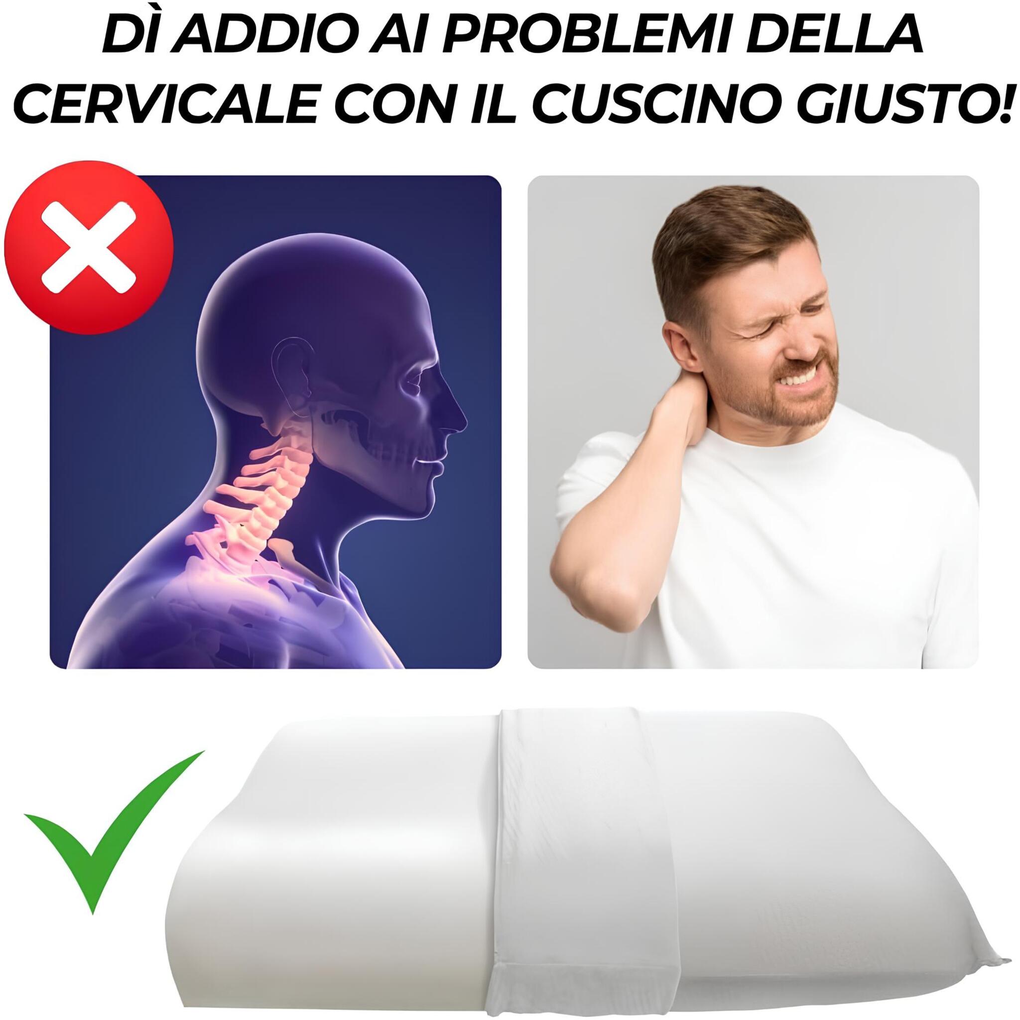Cuscino Cervicale in Memory Foam Ortopedico Antiacaro a doppia onda