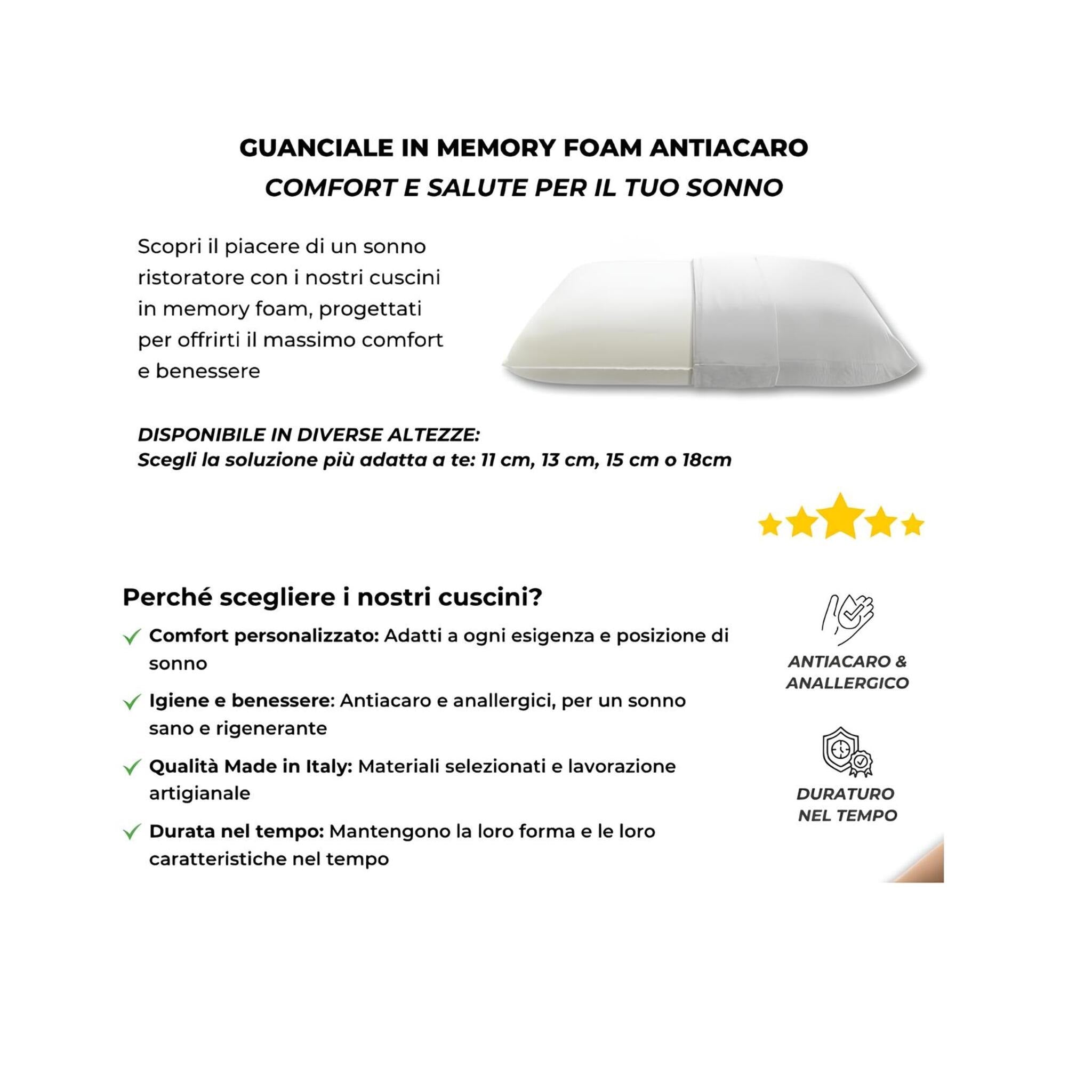 Guanciale in Memory Foam Ortopedico Antiacaro mod. Saponetta