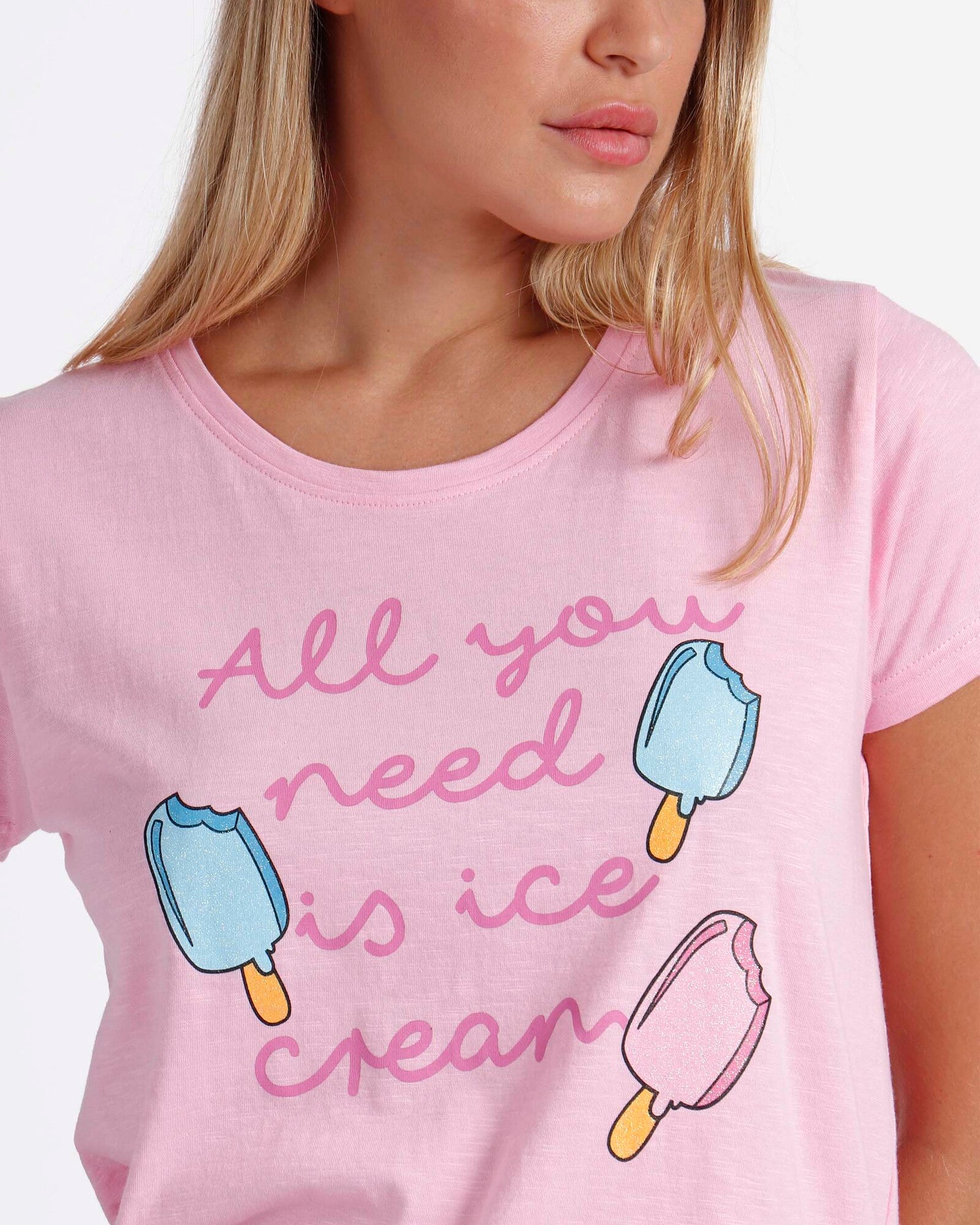 These 100% cotton pajamas with short sleeve t-shirt and shorts are ideal for accompanying you on summer evenings. In fact, cotton is renowned for being a breathable yarn, soft on the skin and comfortable: a cuddle of comfort all night long!