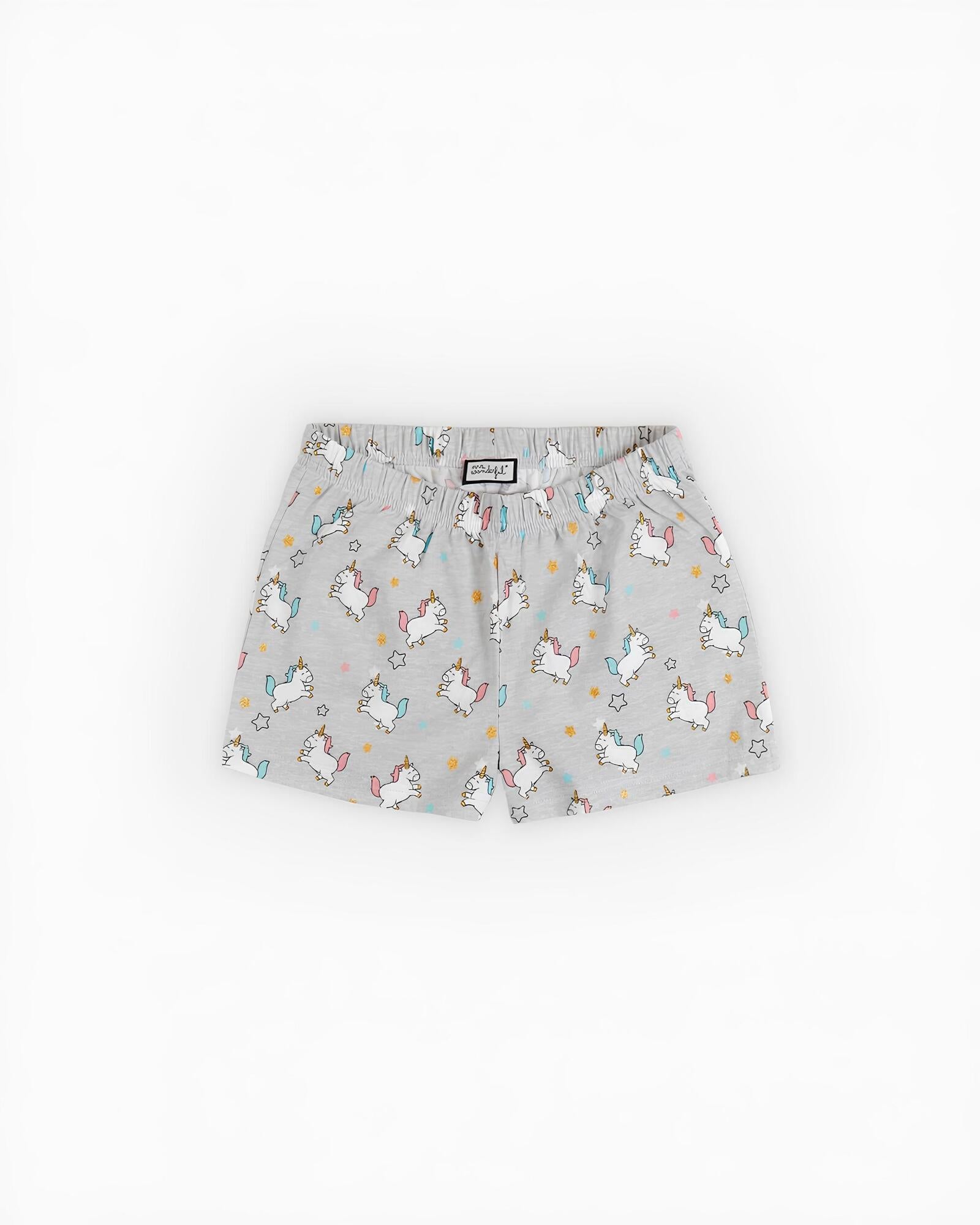 Trousers: Short, unicorn motif print and elastic waist
