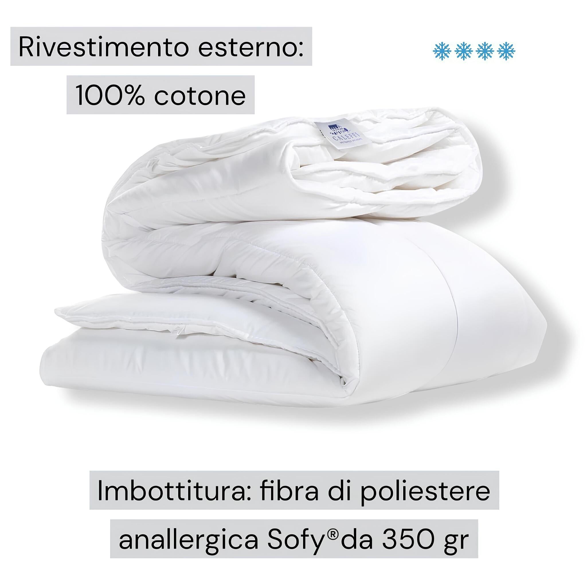 Realizzato con imbottitura in fibra anallergica Sofy di alta qualità e rivestimento in 100% cotone tinta unita, unisce leggerezza e calore, garantendo benessere e traspirabilità.