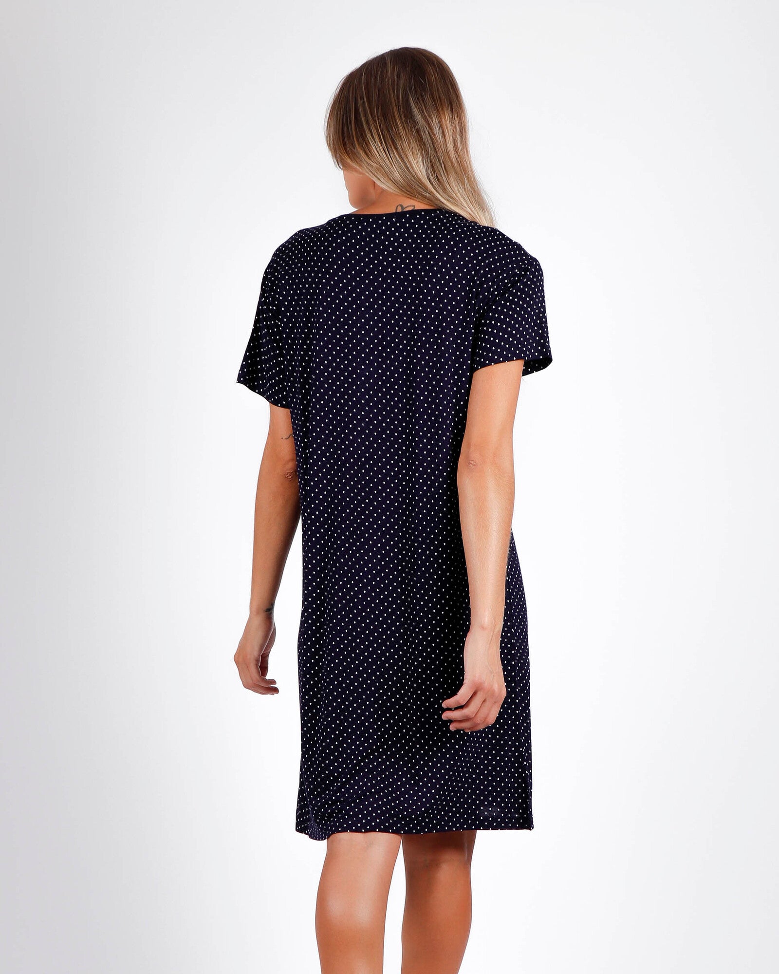 Women's nightdress in viscose with short sleeves and polka dots. The nightdress is in viscose fabric, features a refined polka dot pattern and embroidered details. Soft touch fabric. Packaged in a personalized Admas box