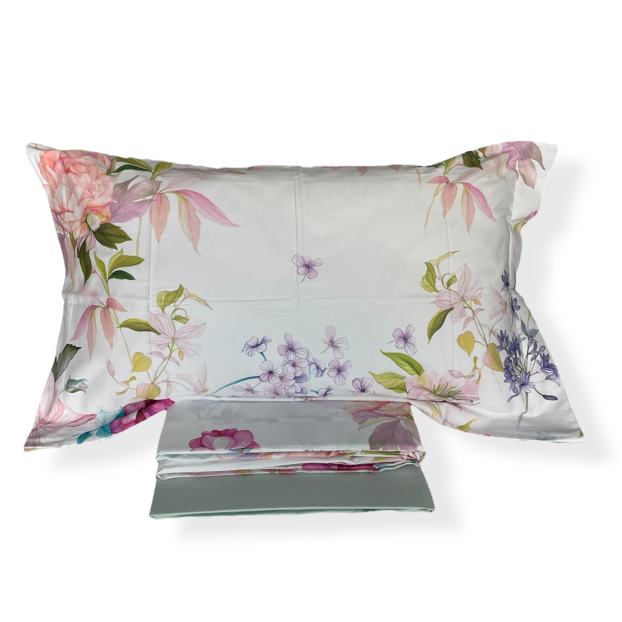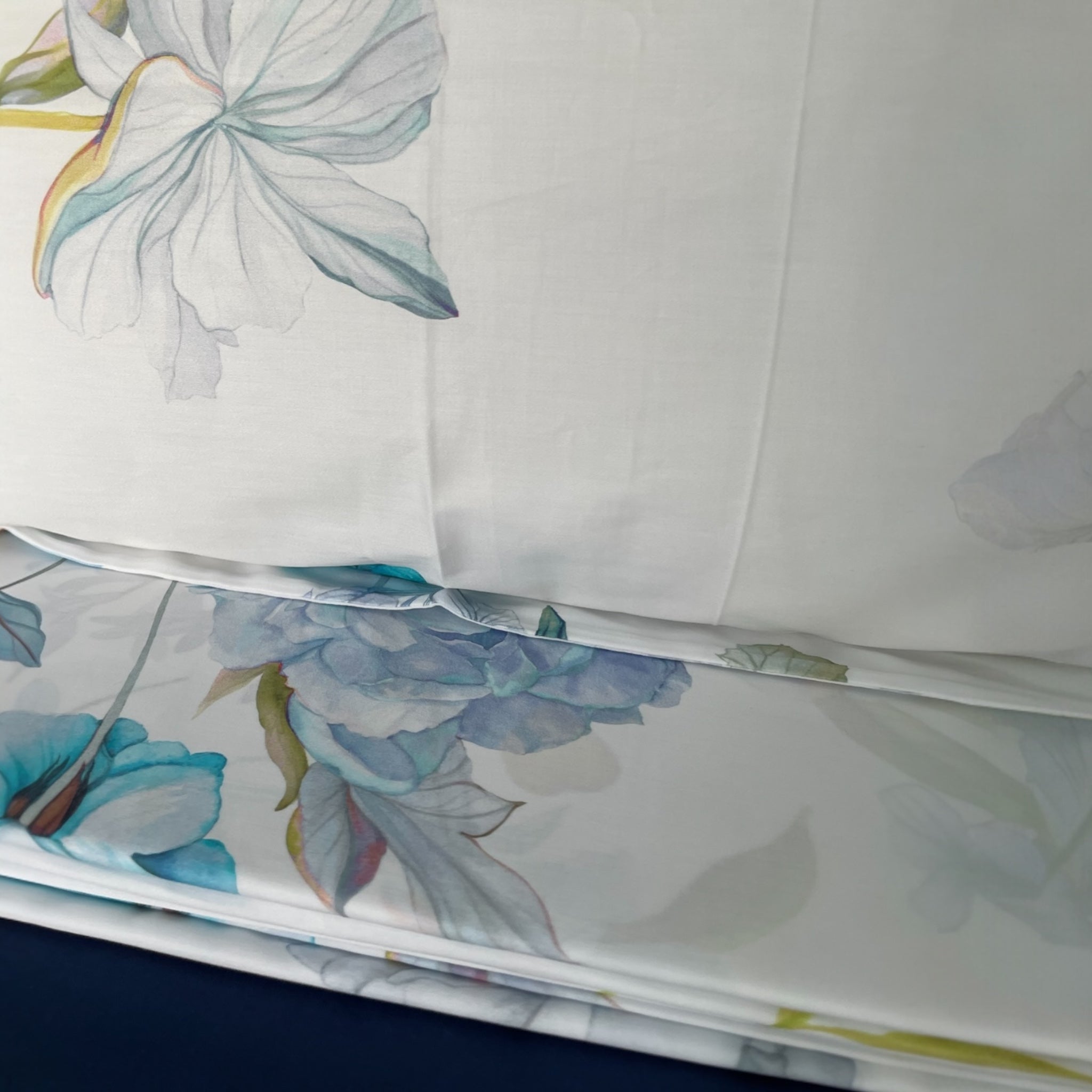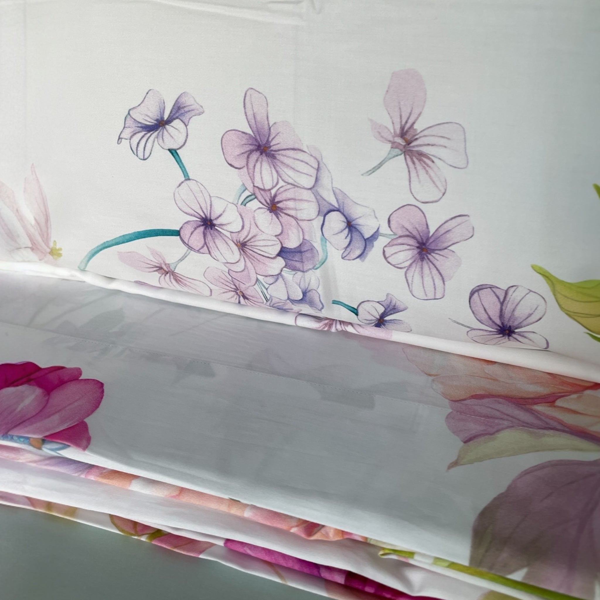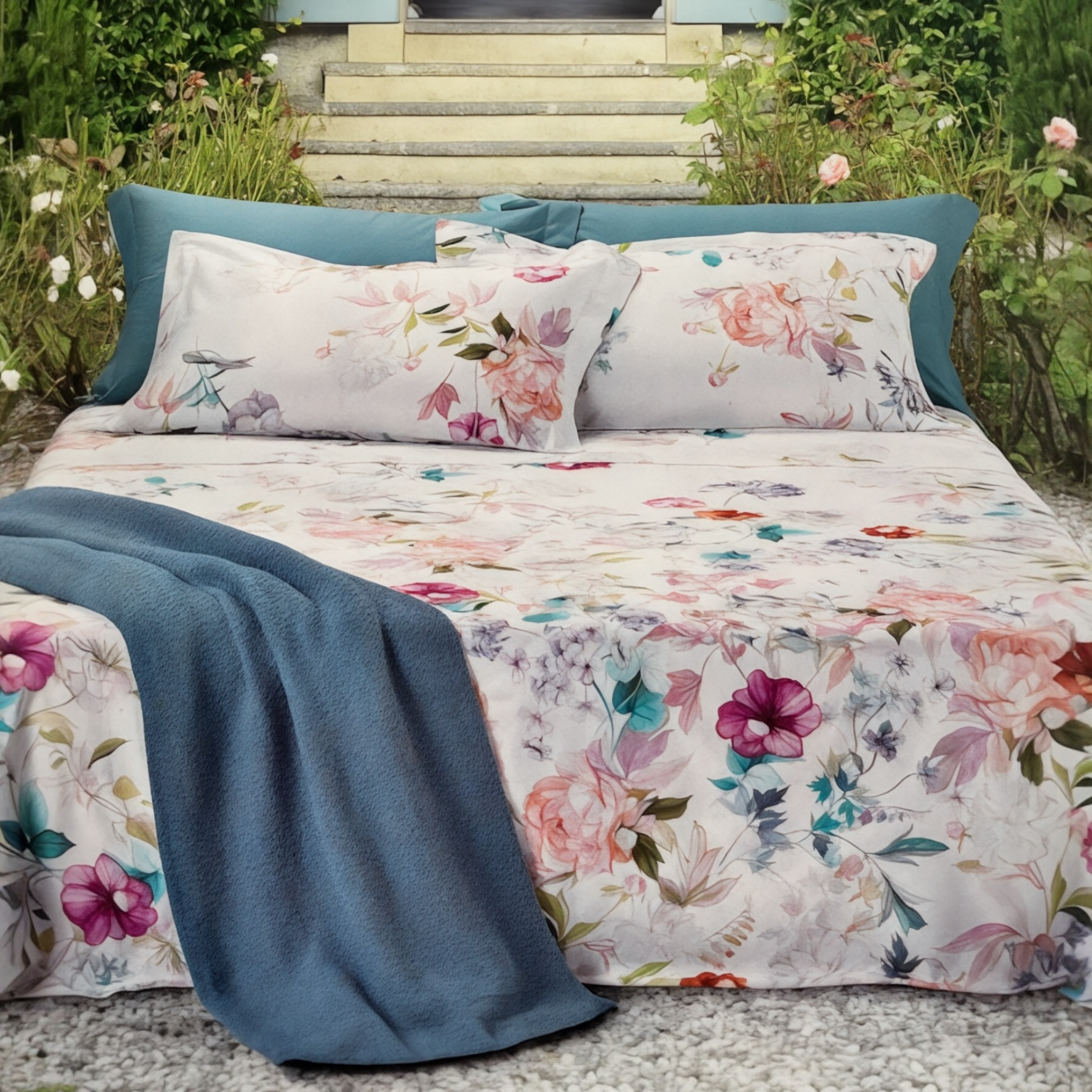Complete with Mirabello percale cotton sheets. Double size: top sheet 250x290 cm, plain bottom sheet with corners 175x205 cm and 2 pillowcases 50x80 cm. Material: 100% pure cotton percale. Wash and iron according to the instructions on the label. Sent in its original envelope. The product for regular and original sale guaranteed by Mirabello.