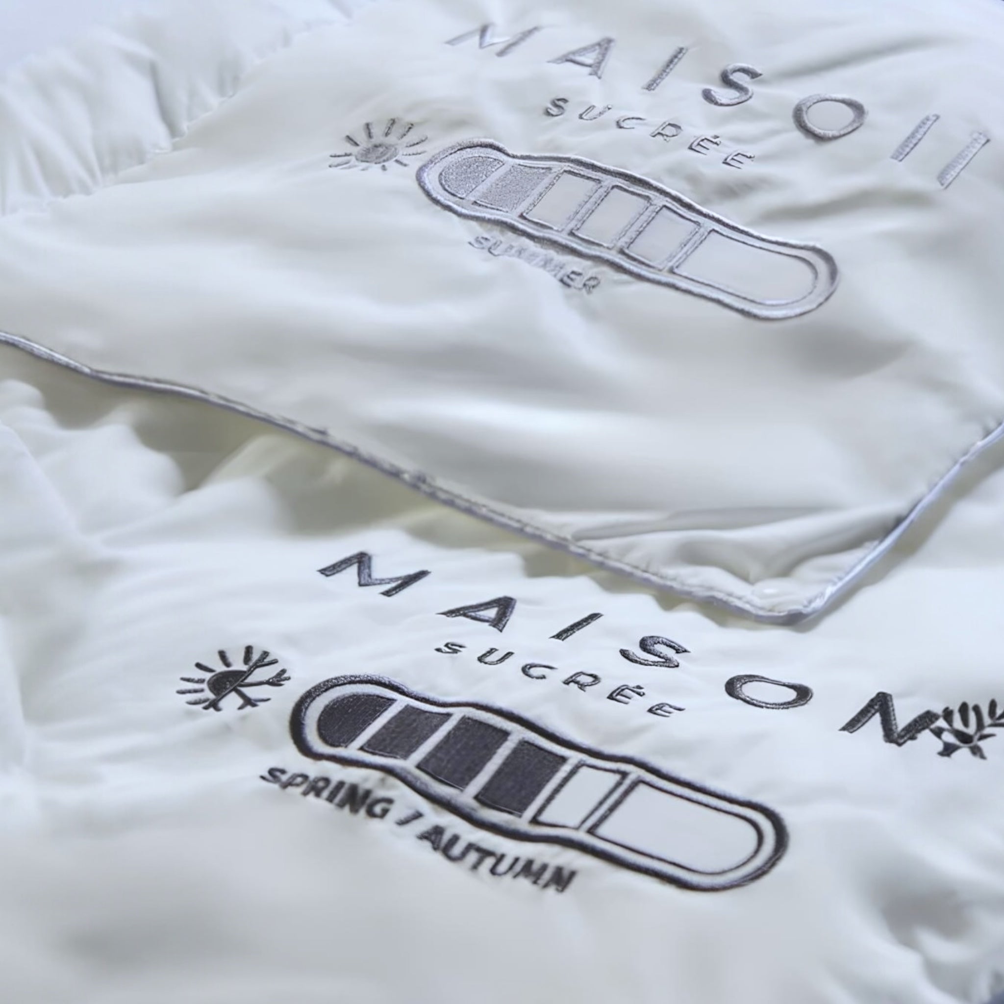 Questo piumino 4 stagioni firmato Maison Sucree è realizzato in tessuto Tencel, una fibra naturale nota per la sua straordinaria morbidezza, traspirabilità e sostenibilità. Il Tencel è derivato dalla cellulosa di legno, rendendolo un materiale eco-compatibile e delicato sulla pelle. Ideale per tutte le stagioni, questo piumino è composto da due strati che possono essere uniti o separati a seconda della temperatura, garantendo comfort termico personalizzato tutto l’anno. Anallergico e antiumidità, è particolarmente adatto a chi cerca un ambiente di riposo sano e confortevole. Facile da lavare e resistente, unisce funzionalità e stile con l’eleganza essenziale di Maison Sucree.