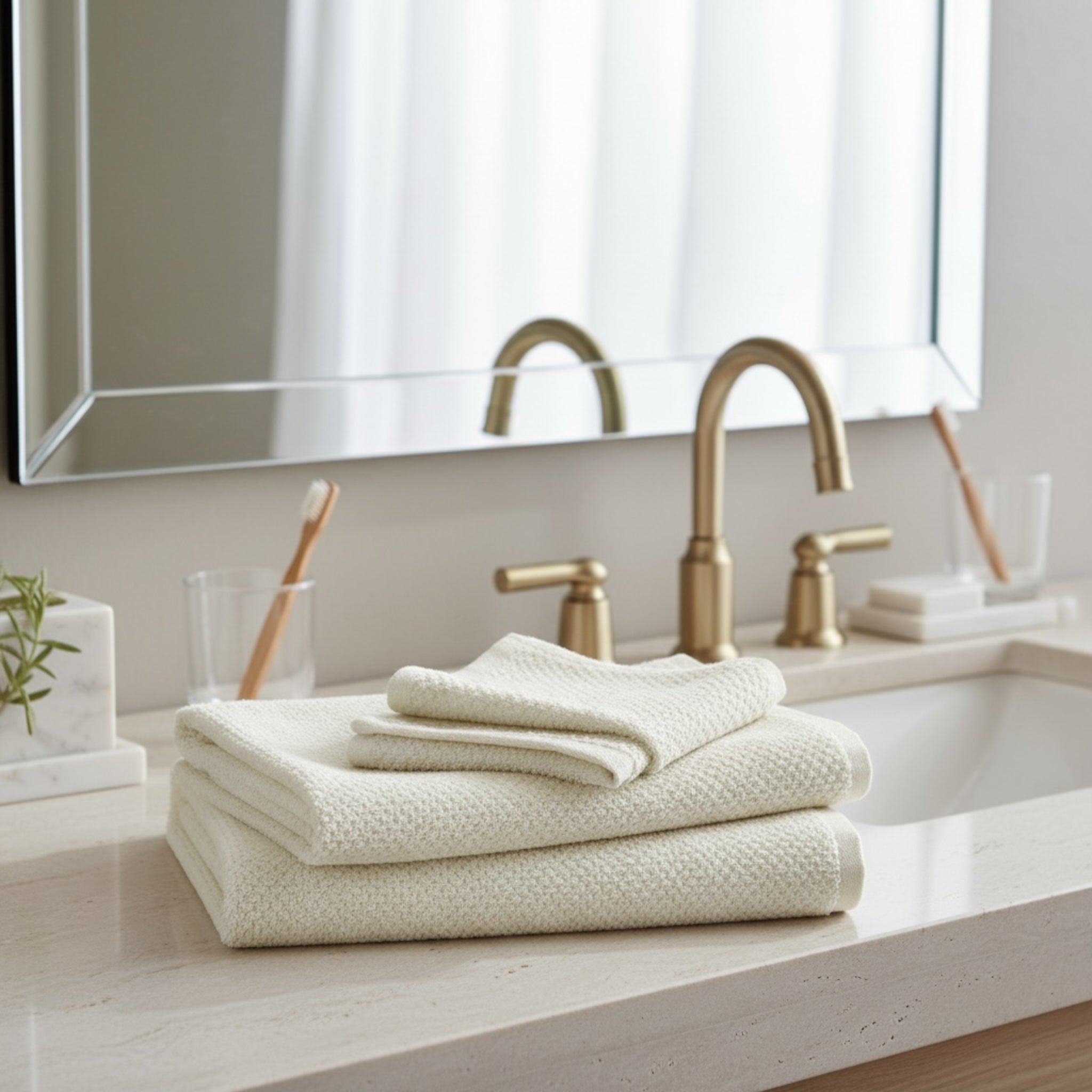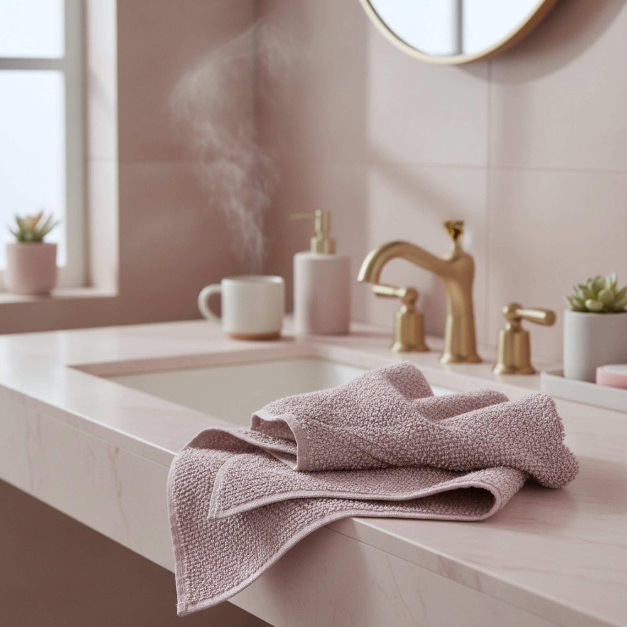 Set of 4 washcloths with washcloth basket 100% Cotton by Maison Sucrée