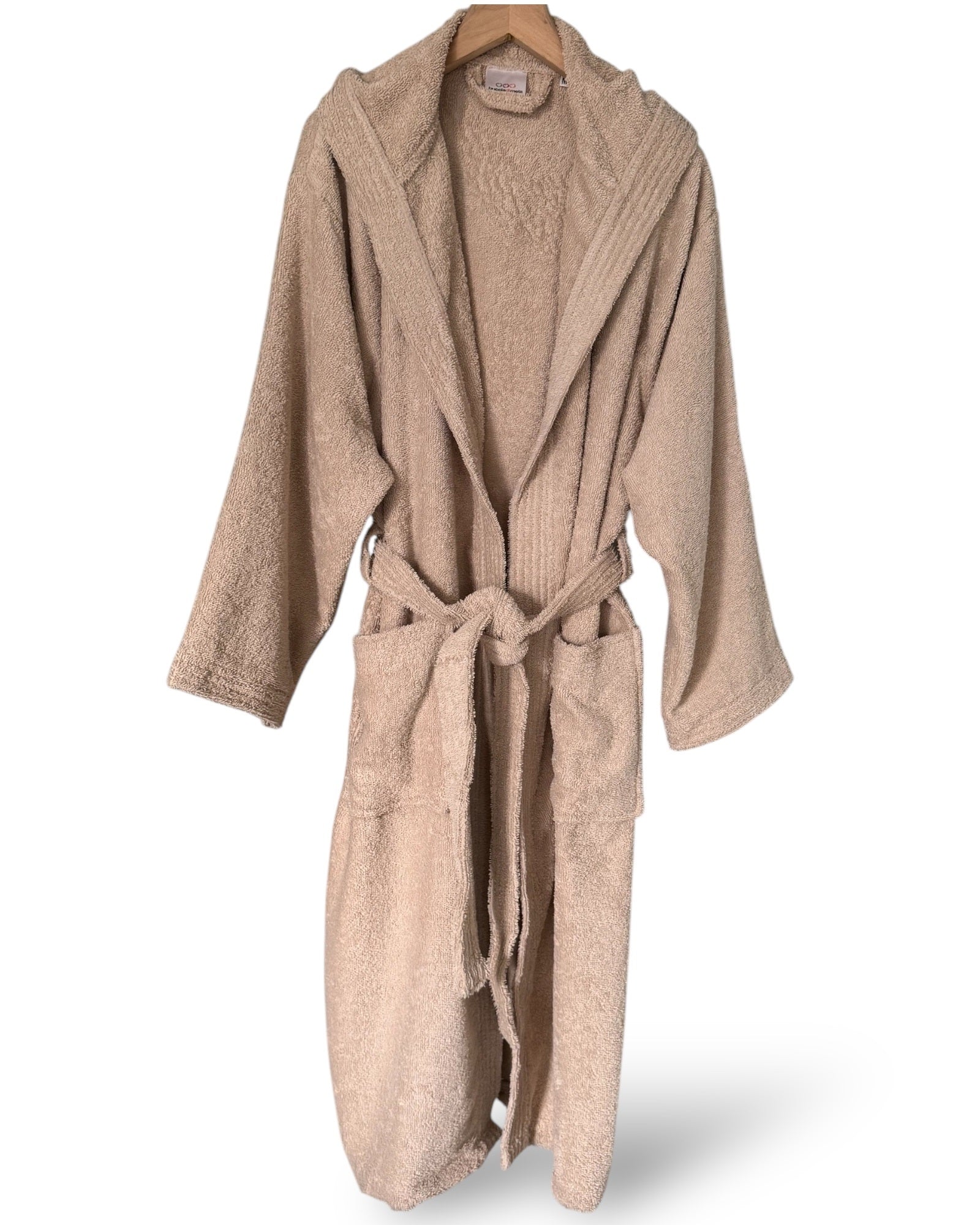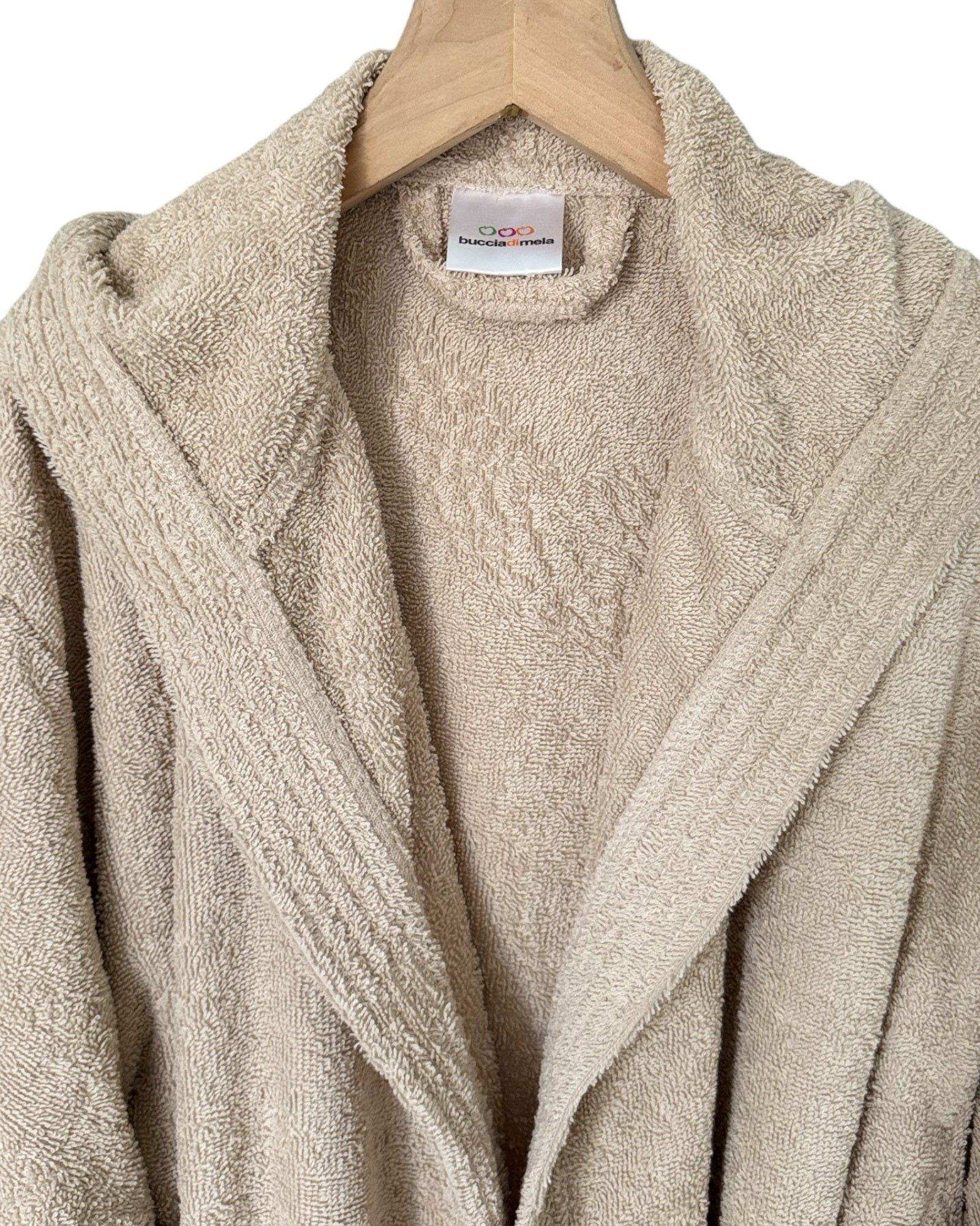 Descrizione: Accappatoio con cappuccio, tasche e cintura di Buccia di Mela in tinta unita