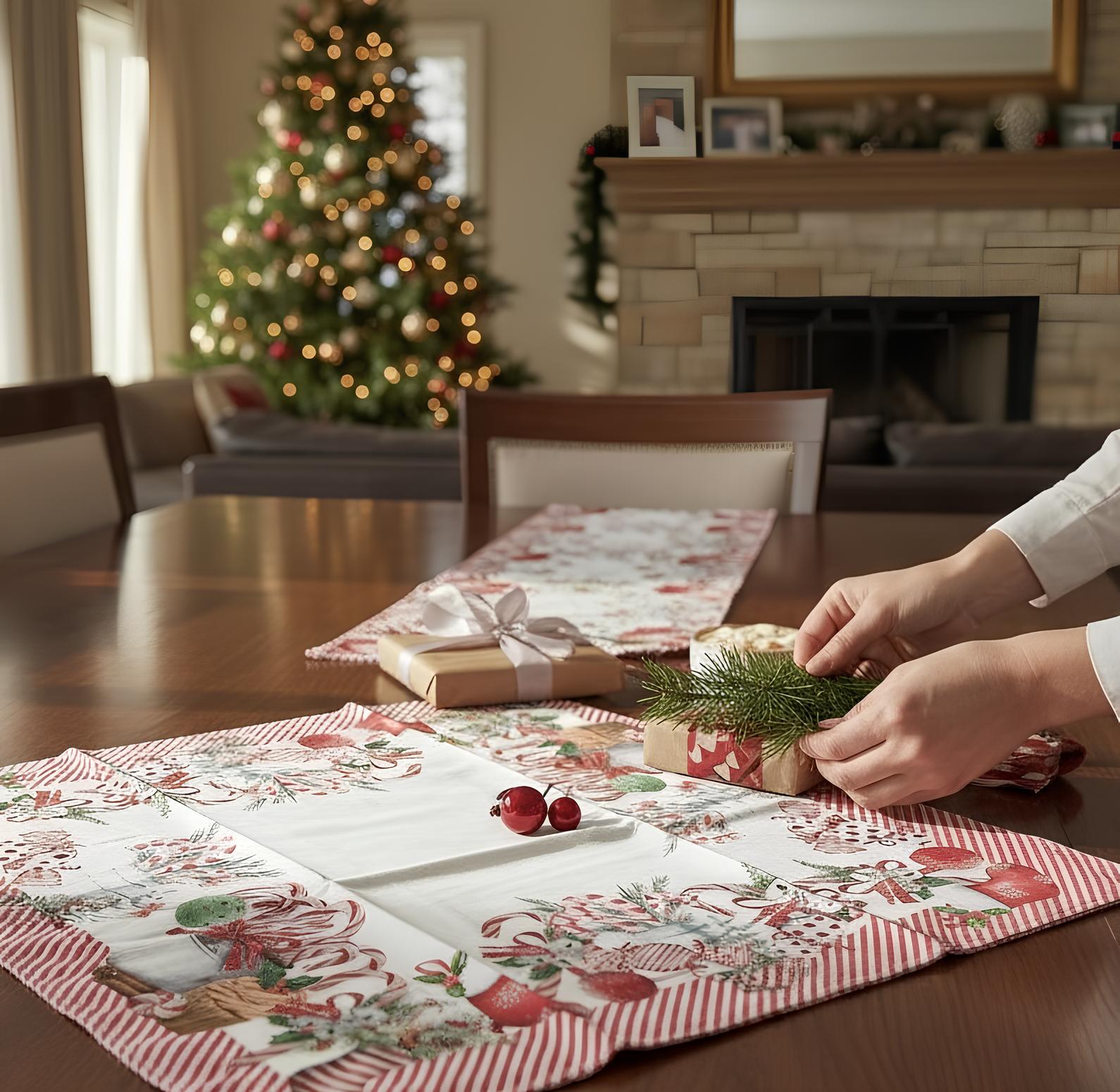 Centrotavola Natalizio in cotone panama quadrato 90x90 cm Art. Candy