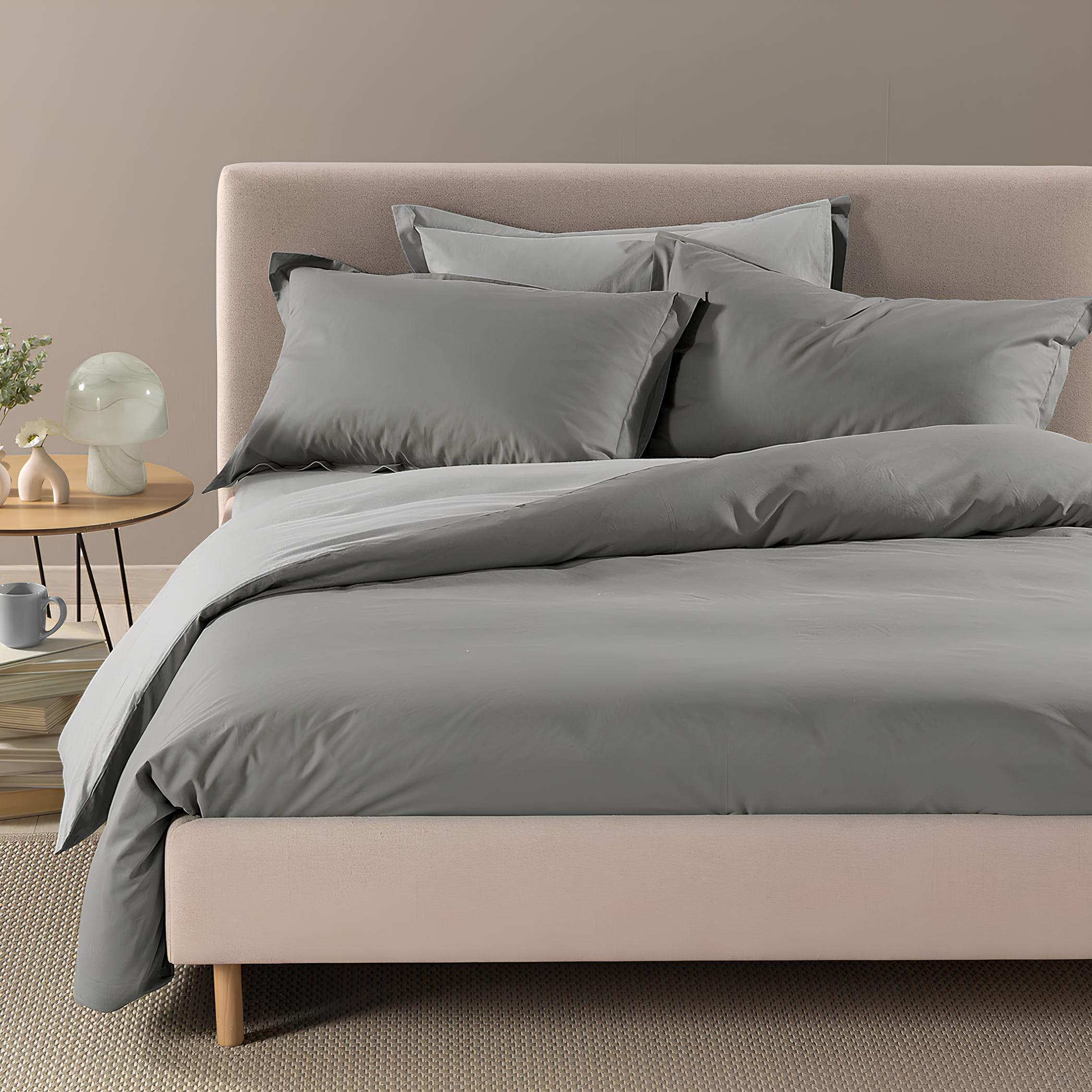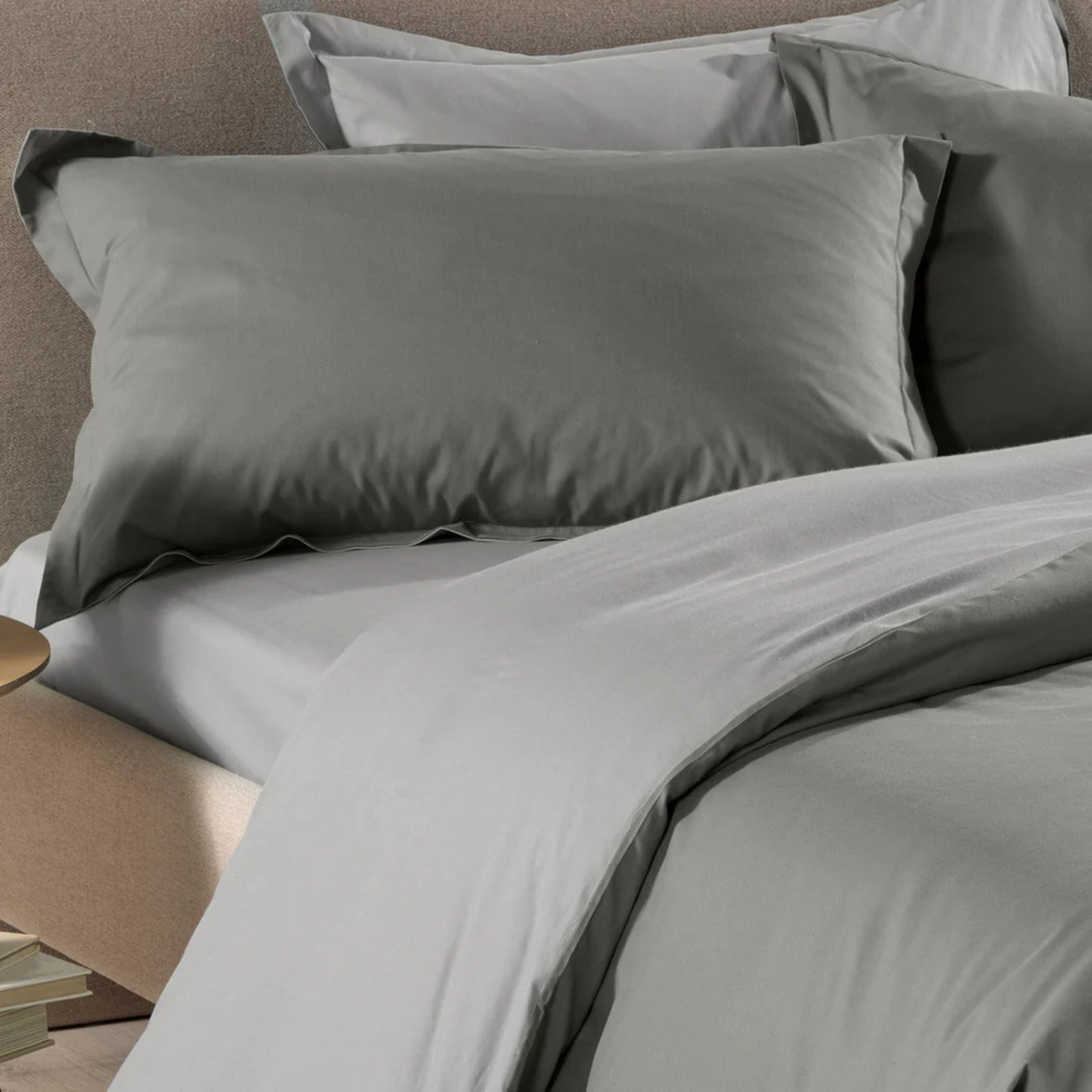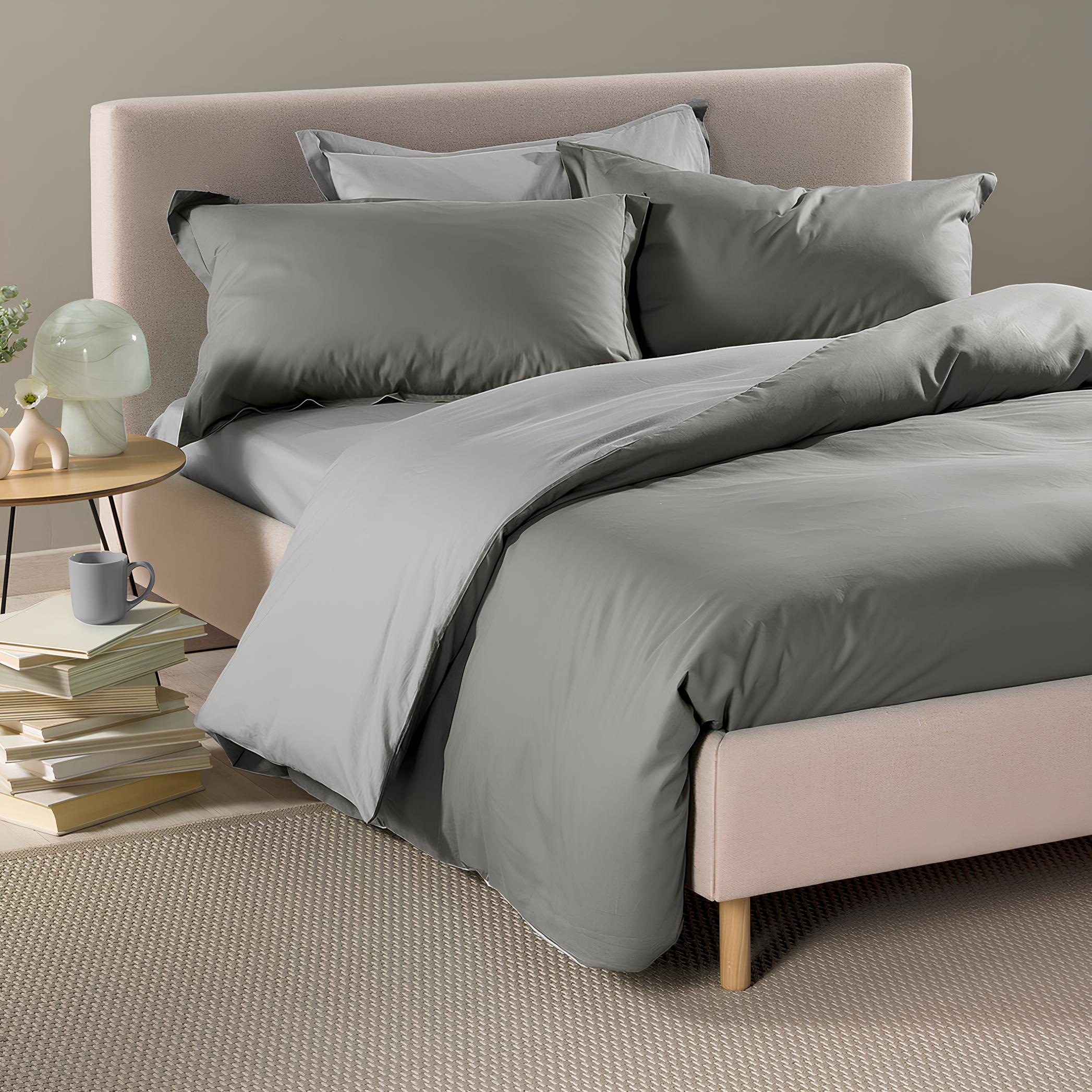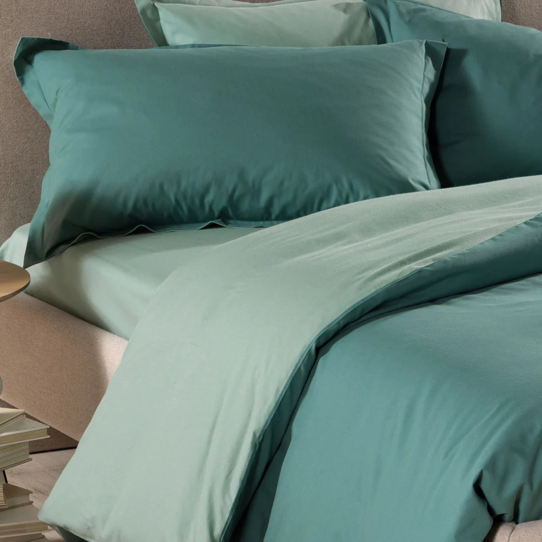 Il sacco copripiumino double face (255x200 cm) con patella da 40 cm permette di rinnovare facilmente lo stile del letto, alternando i due lati in toni coordinati.