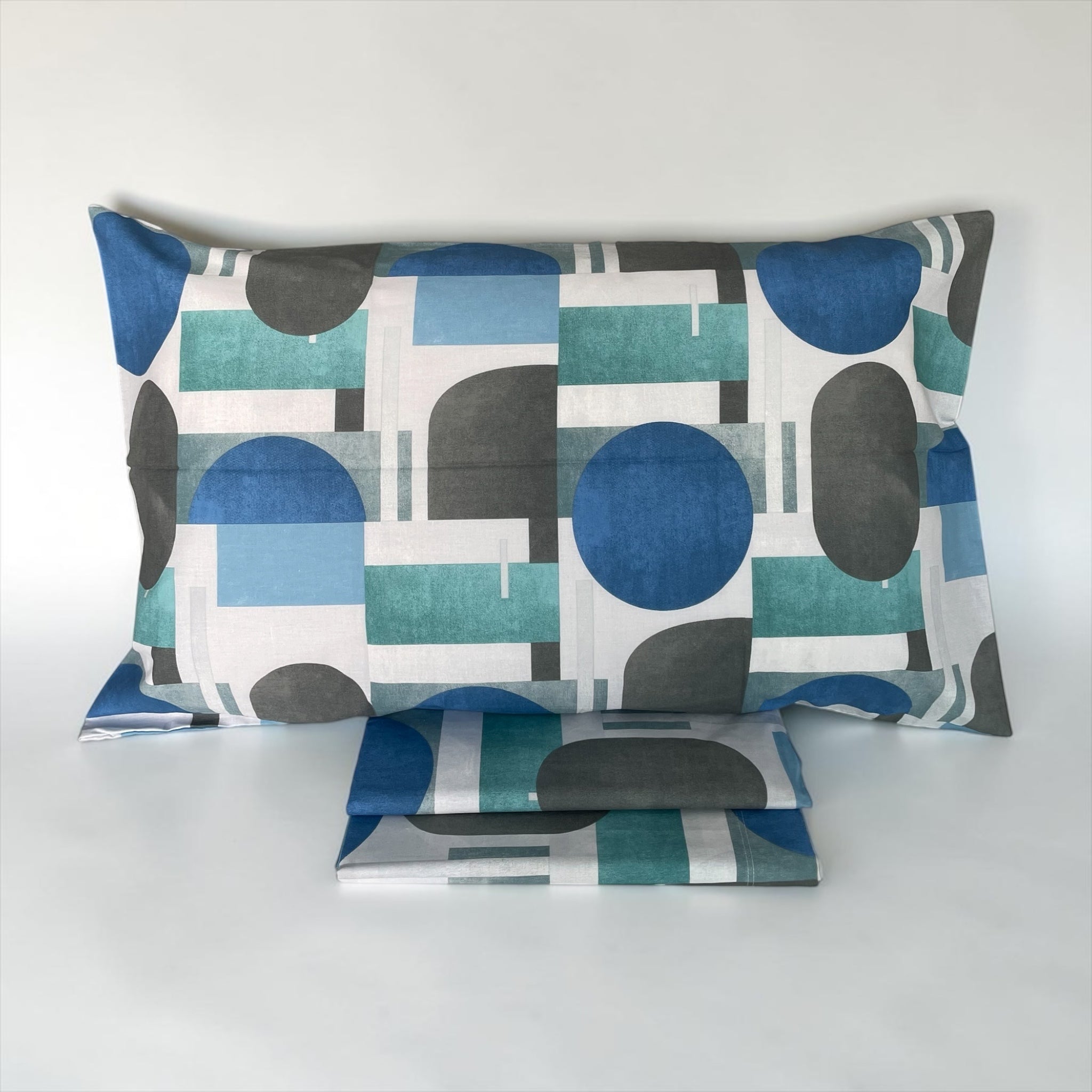 Il completo lenzuola matrimoniale Zambaiti Schema unisce stile moderno e comfort quotidiano grazie a una raffinata fantasia geometrica dai toni contemporanei.