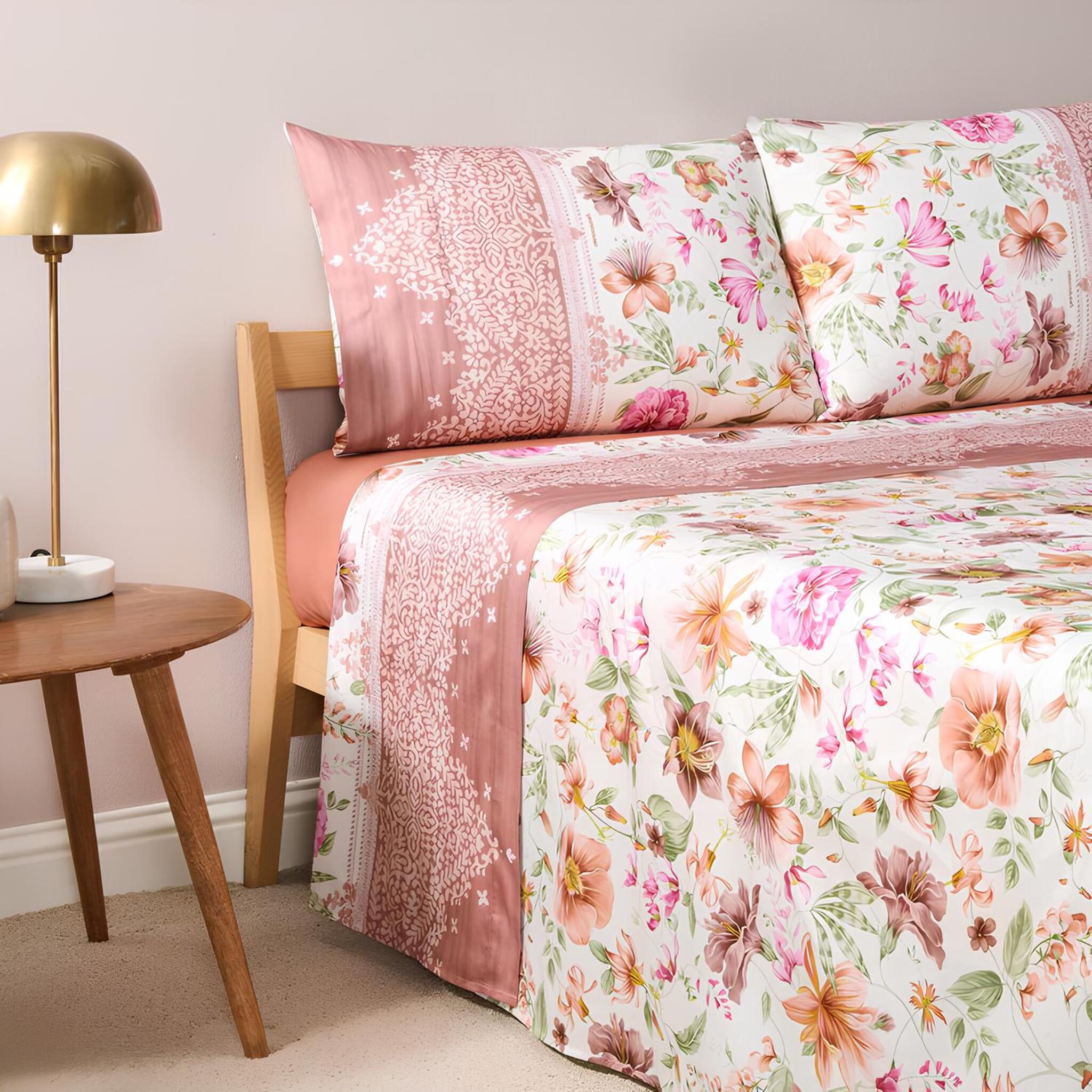 Porta un tocco di freschezza e raffinatezza nella tua camera da letto con il completo lenzuola matrimoniale Bassetti Casablanca. Realizzato in 100% cotone, è pensato per offrirti massimo comfort anche durante le notti estive. Il design floreale, ispirato a un elegante erbario, unisce peonie, ibiscus e glicini in una composizione armoniosa e naturale. La balza del lenzuolo superiore è decorata con motivi che richiamano i ricami marocchini, per un effetto sofisticato e scenografico. Disponibile in due varianti cromatiche: blu/turchese e rosa/marrone, per adattarsi a diversi stili di arredo. Certificato OEKO-TEX®, è sicuro per la pelle e privo di sostanze nocive. Ideale anche come regalo.