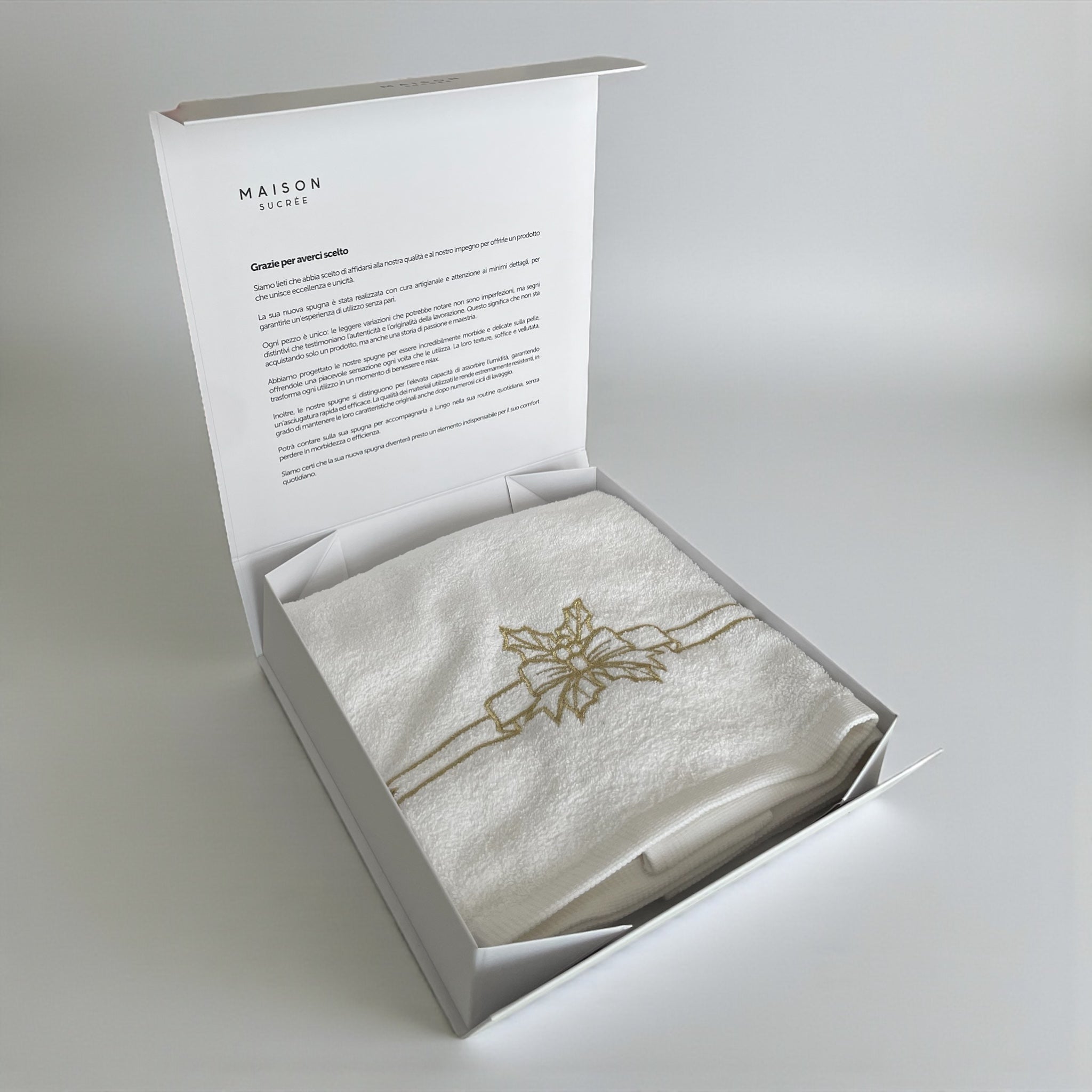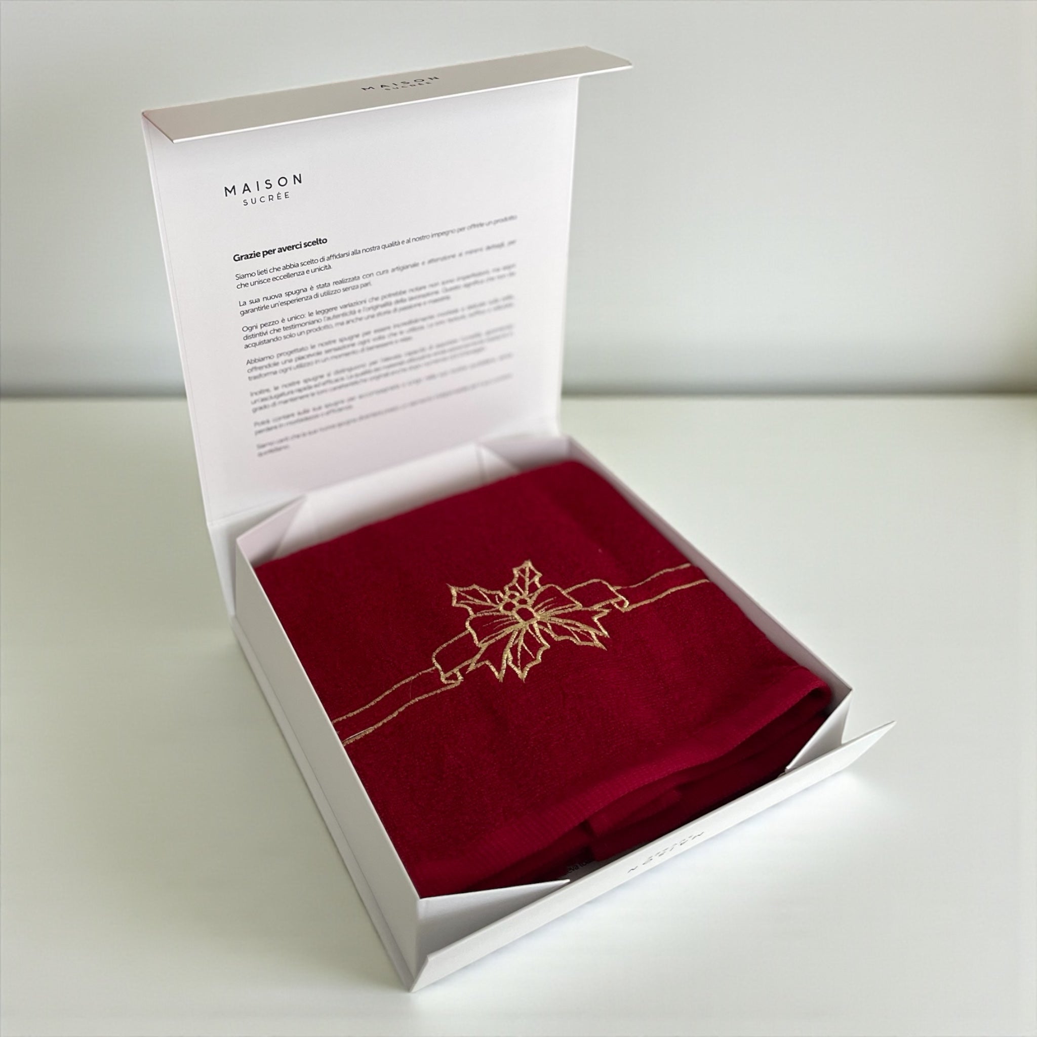 Trasforma la tua sala da bagno in un angolo di eleganza natalizia con il Set Asciugamani Art. Preziosi firmato Maison Sucrée, un connubio perfetto tra raffinatezza e qualità artigianale.