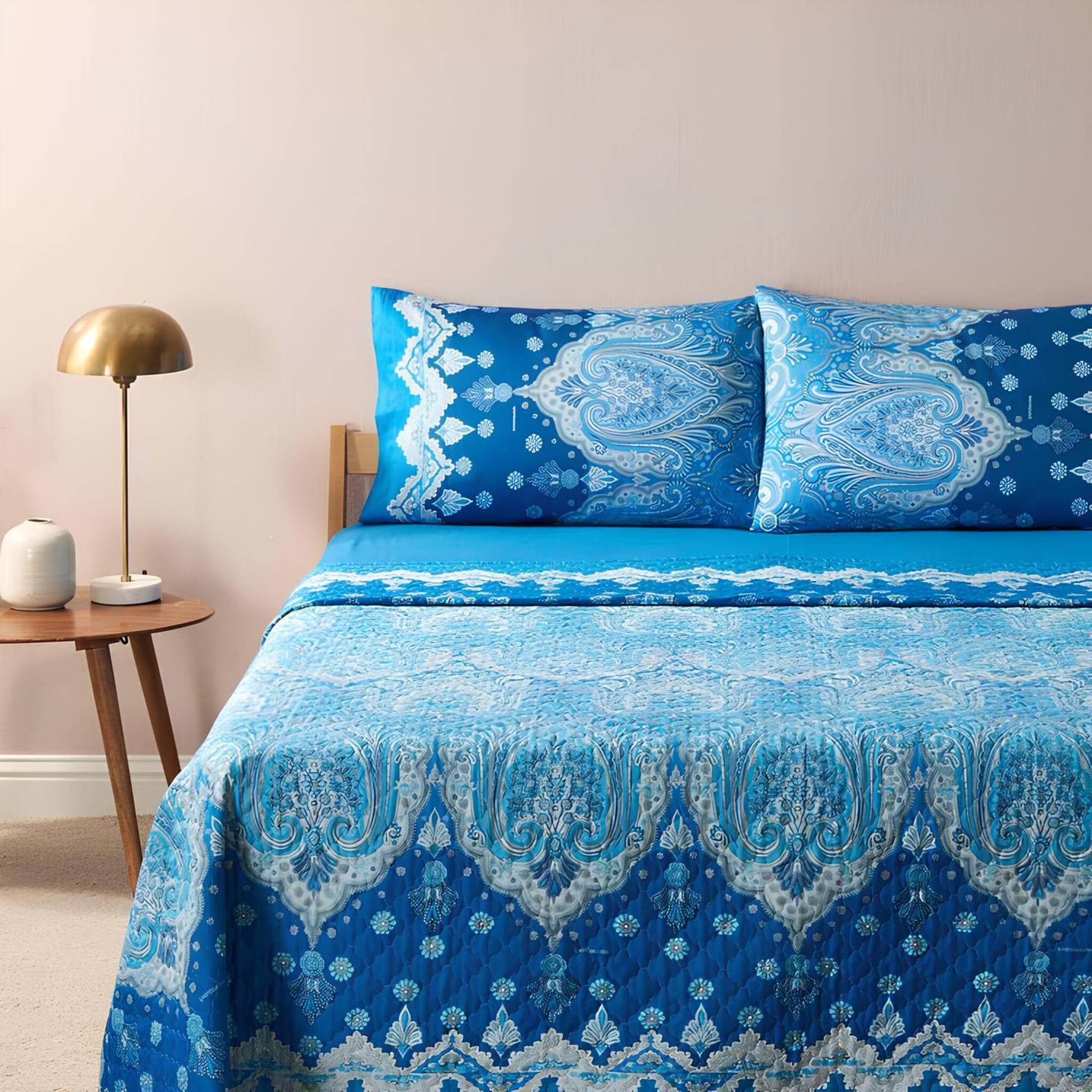 Immergiti nell’eleganza senza tempo della collezione Bassetti Granfoulard con il copriletto trapuntato matrimoniale Isolabella Indigo.
