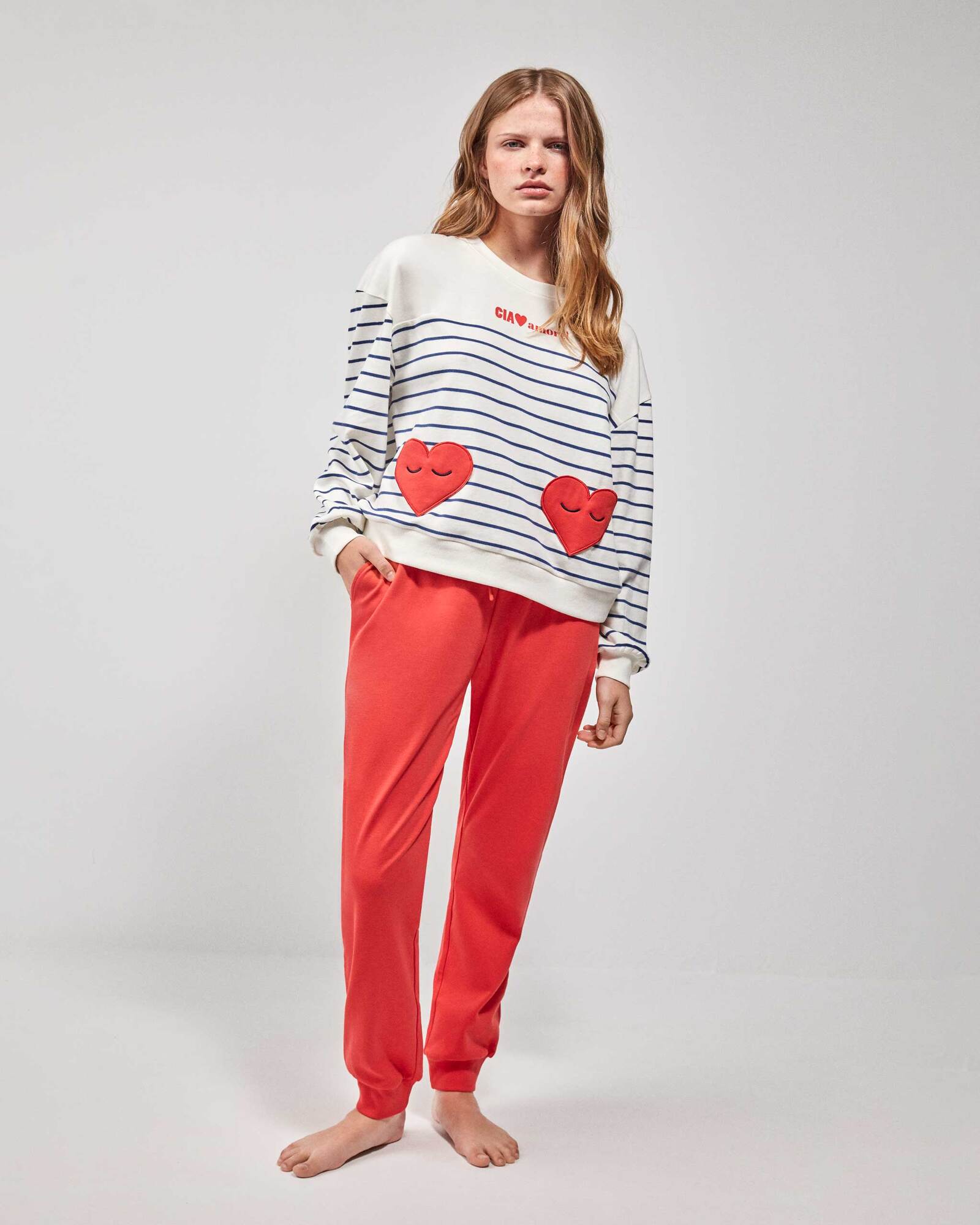 ❤️ Design romantico: maglia girocollo con righe marinière e cuori applicati