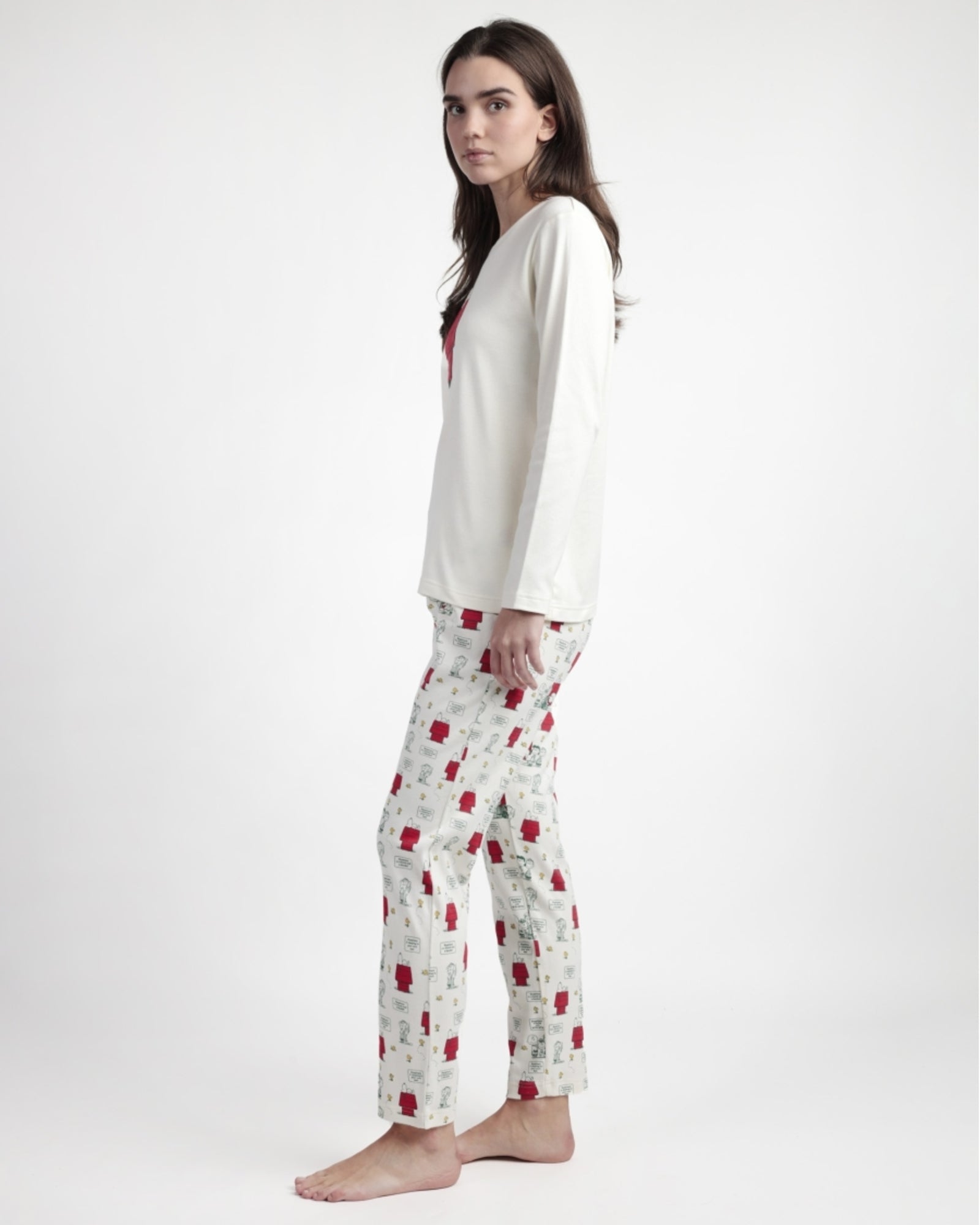 Scopri la dolcezza e il comfort del pigiama donna invernale Peanuts art. 63241, ispirato al mitico Snoopy e realizzato in caldo cotone interlock.