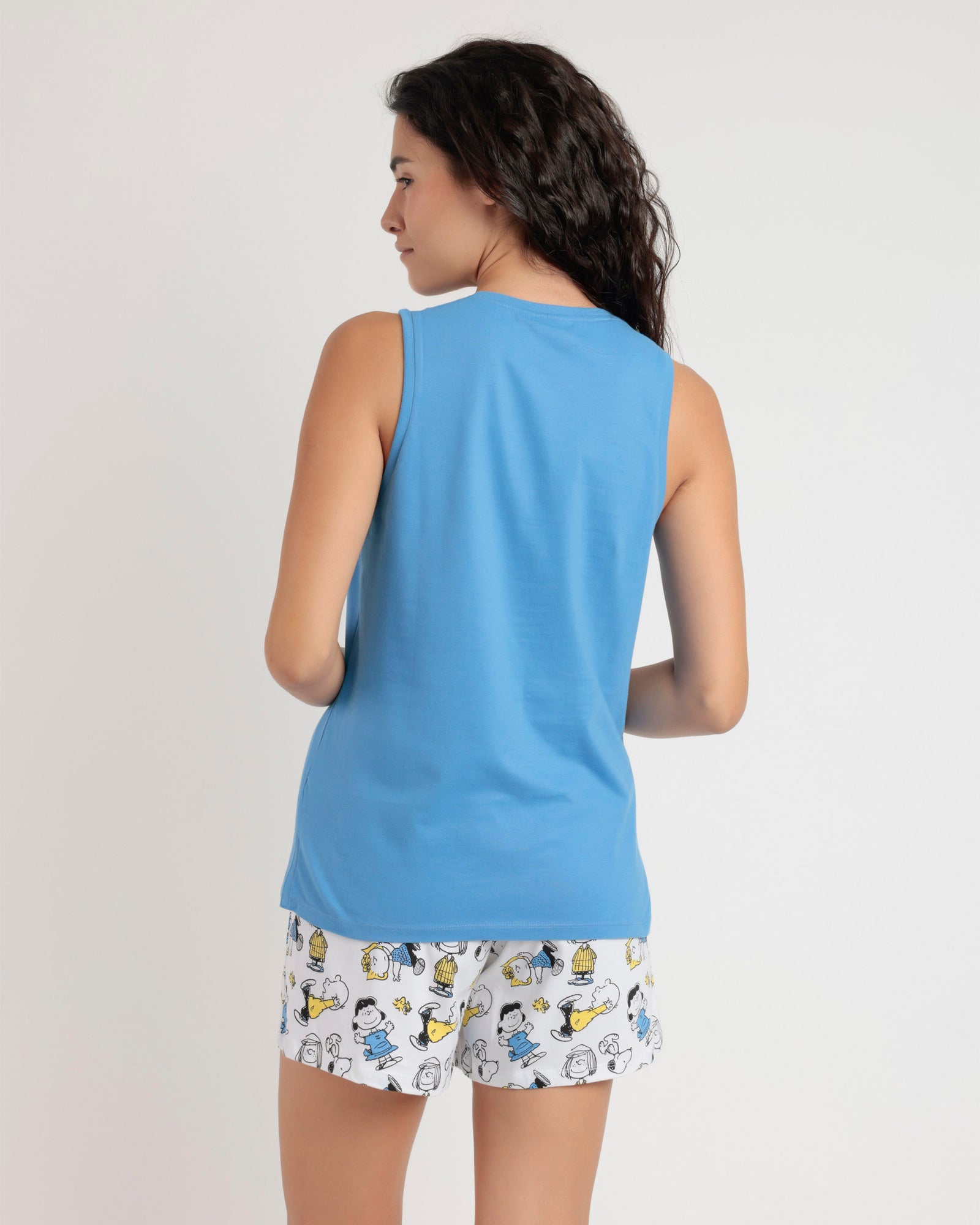 Pigiama Donna estivo di Snoopy in cotone con canotta e pantaloncino corto. Tessuto morbido al tatto. Confezionato in scatola personalizzata
