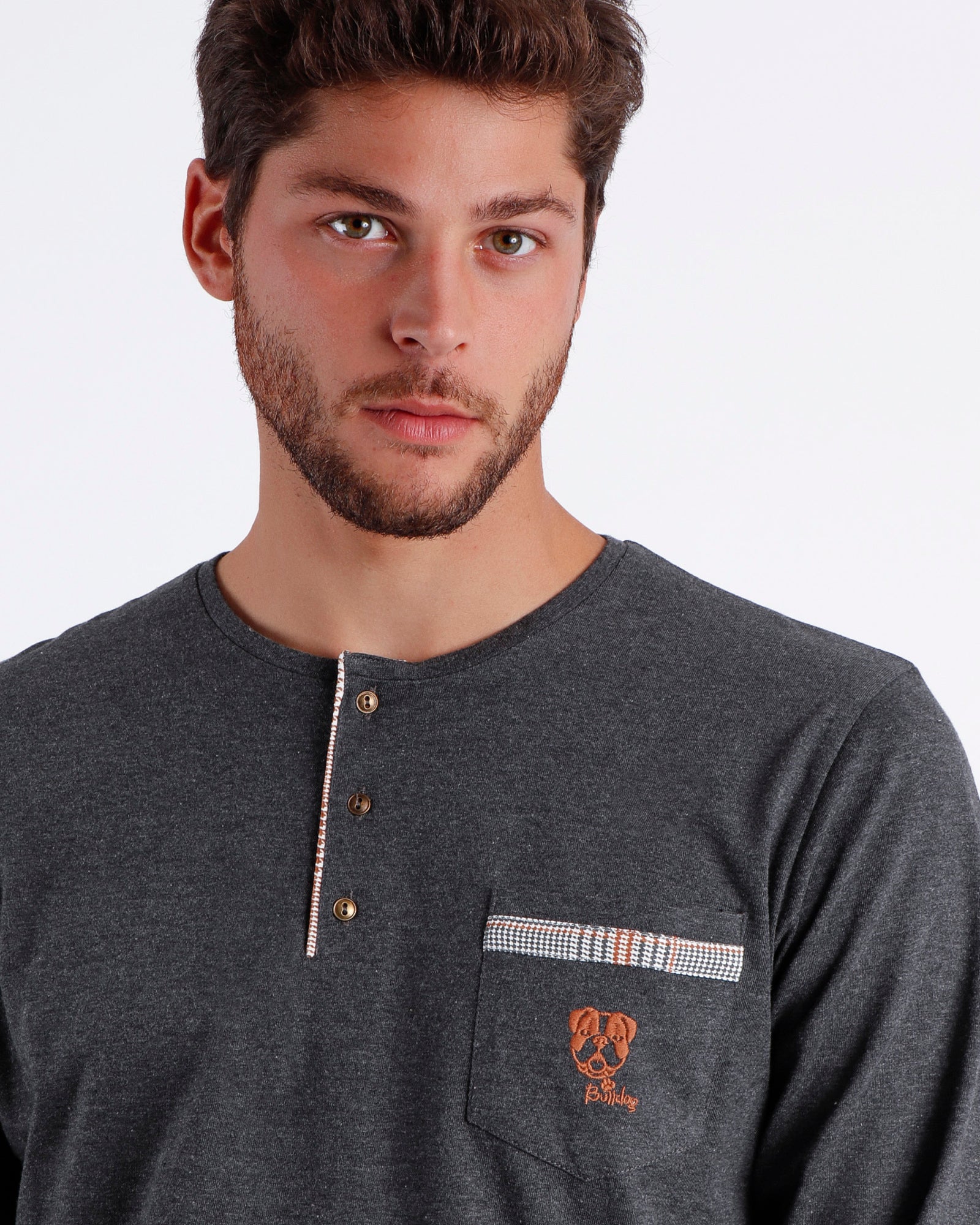Maglia: Modello serafino con bottoni, a maniche lunghe con dettagli ricamati e taschino