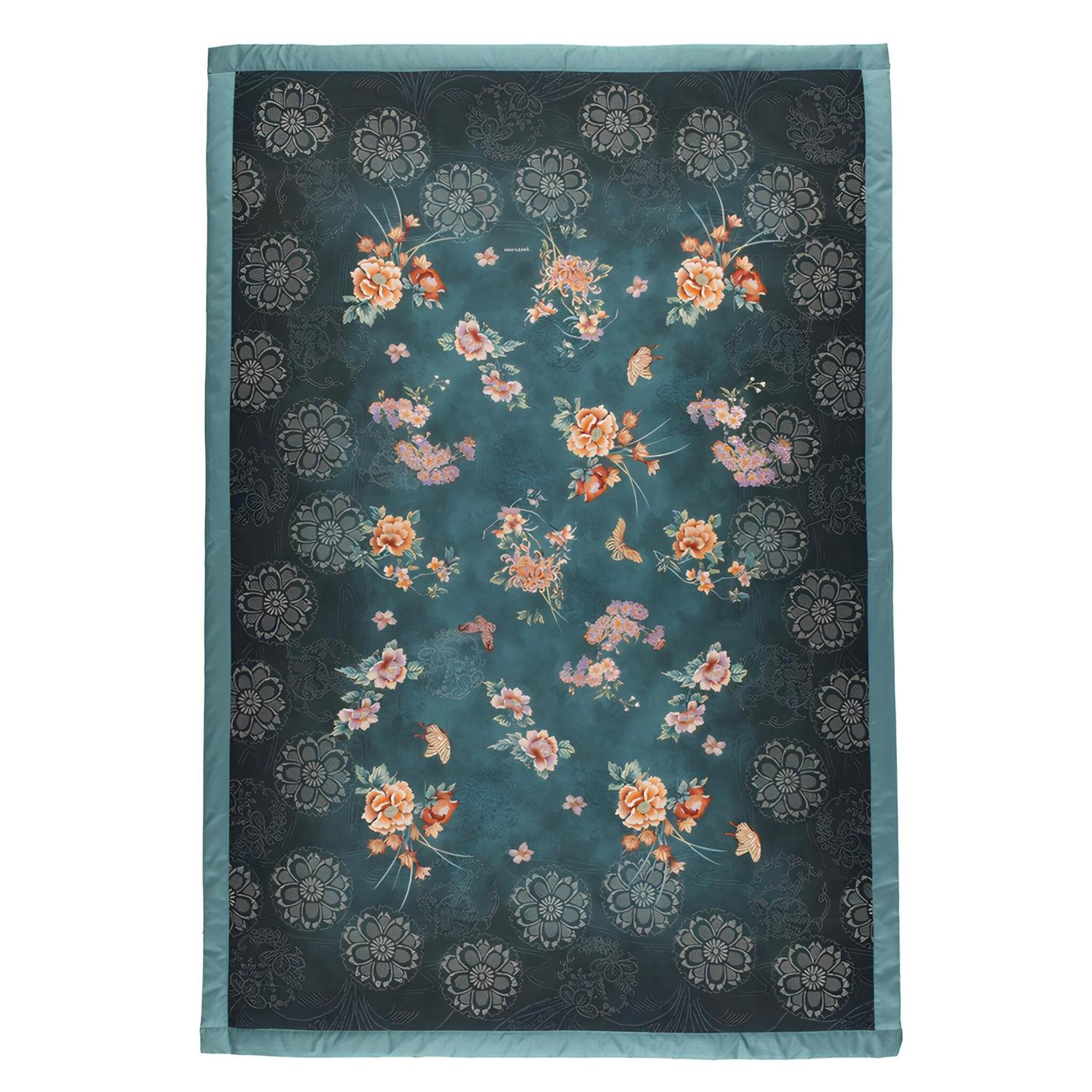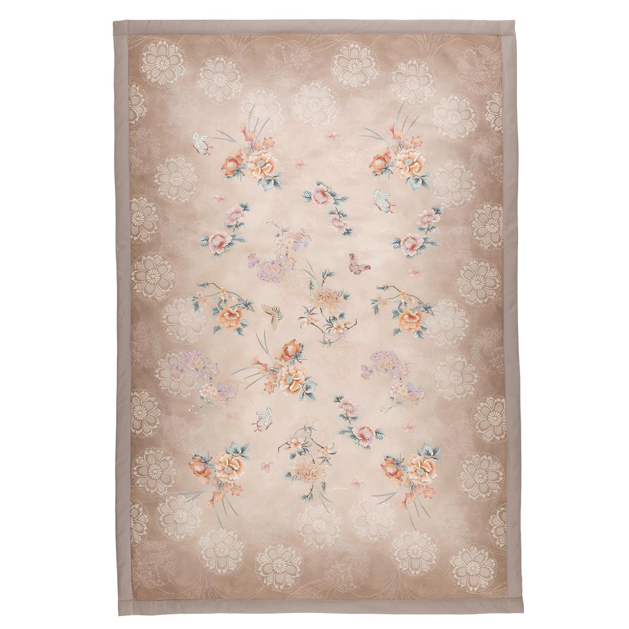 Il disegno Esperidi, ispirato al celebre Giardino delle Naiadi di Padova, interpreta il classico stile floreale Bassetti con delicati motivi orientali e una palette armoniosa, disponibile nei colori Blu Petrolio e Beige.