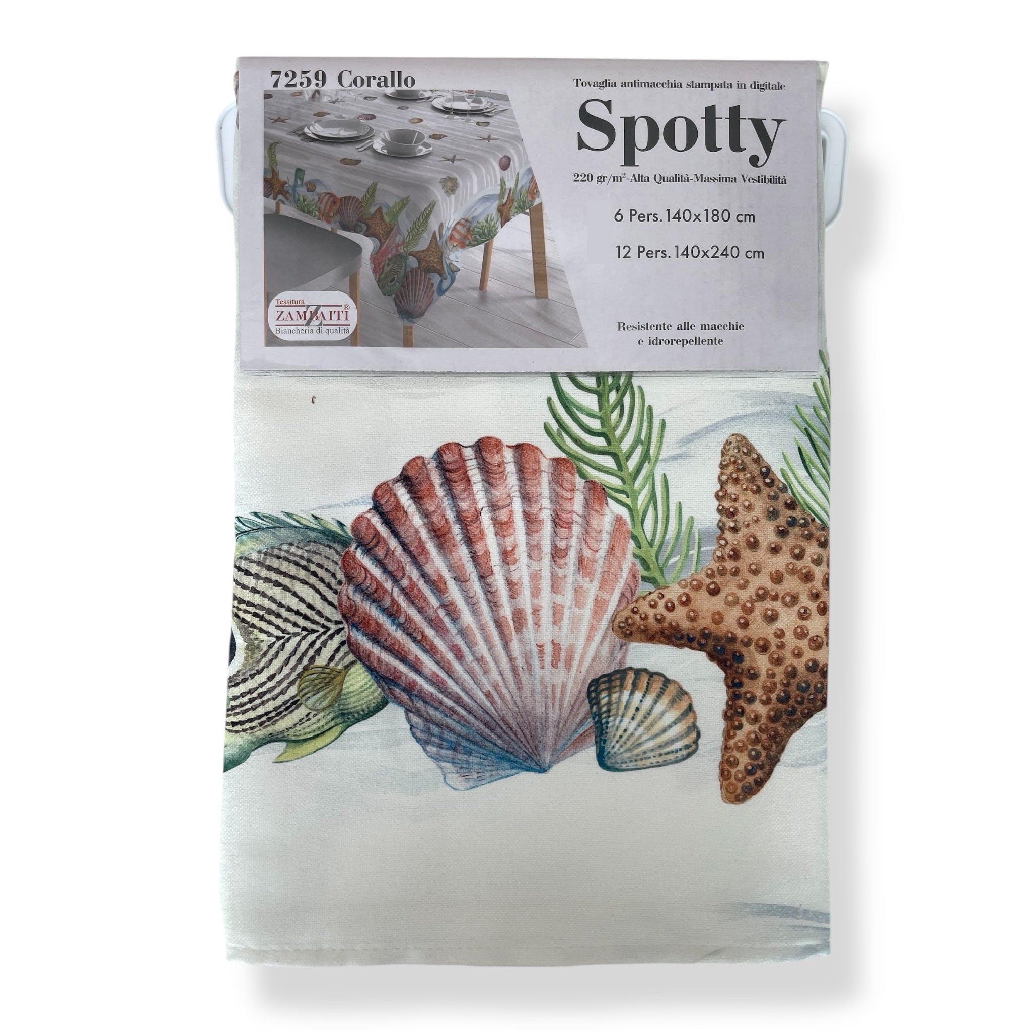 Porta in tavola l’atmosfera del mare con la tovaglia antimacchia Zambaiti Art. Corallo, un perfetto equilibrio tra stile decorativo e funzionalità quotidiana.