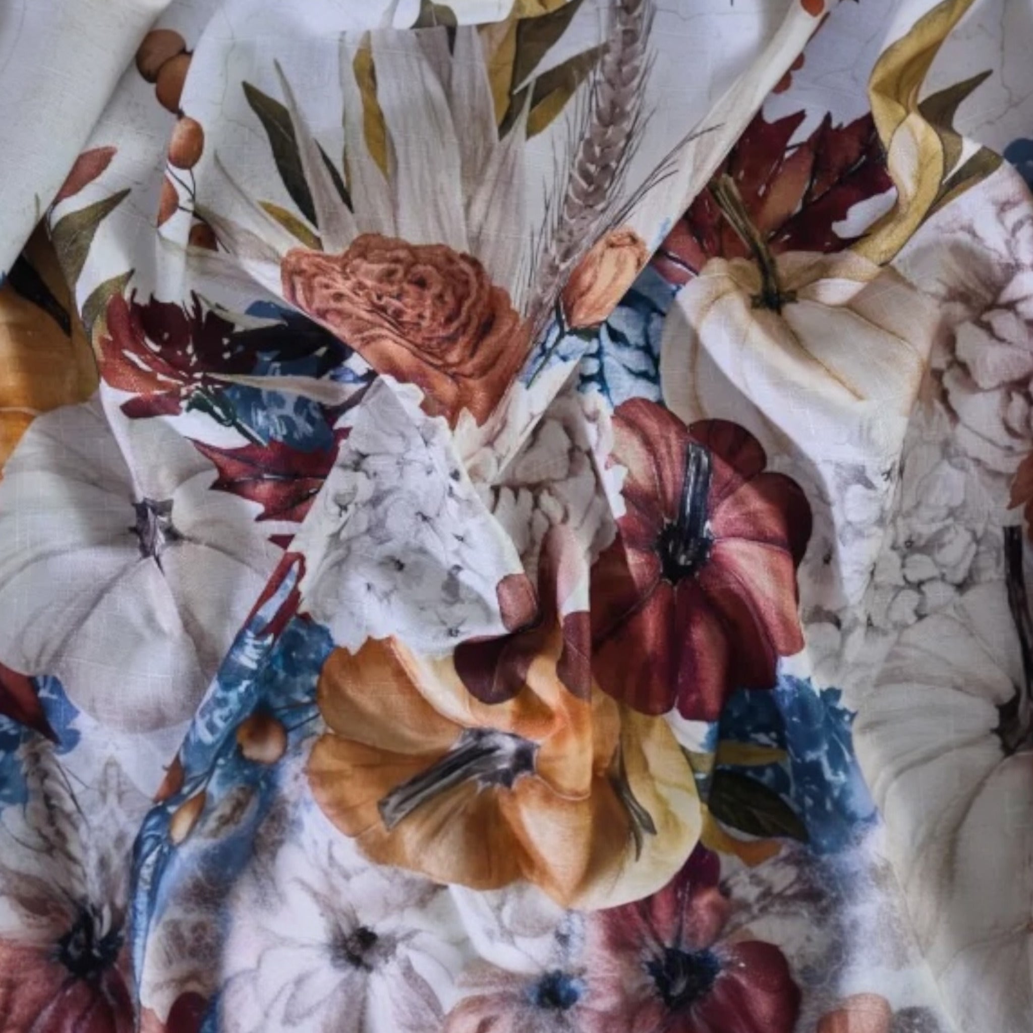 🎃 Design autunnale elegante: stampa digitale ad alta definizione con zucche, fiori e tonalità calde di stagione