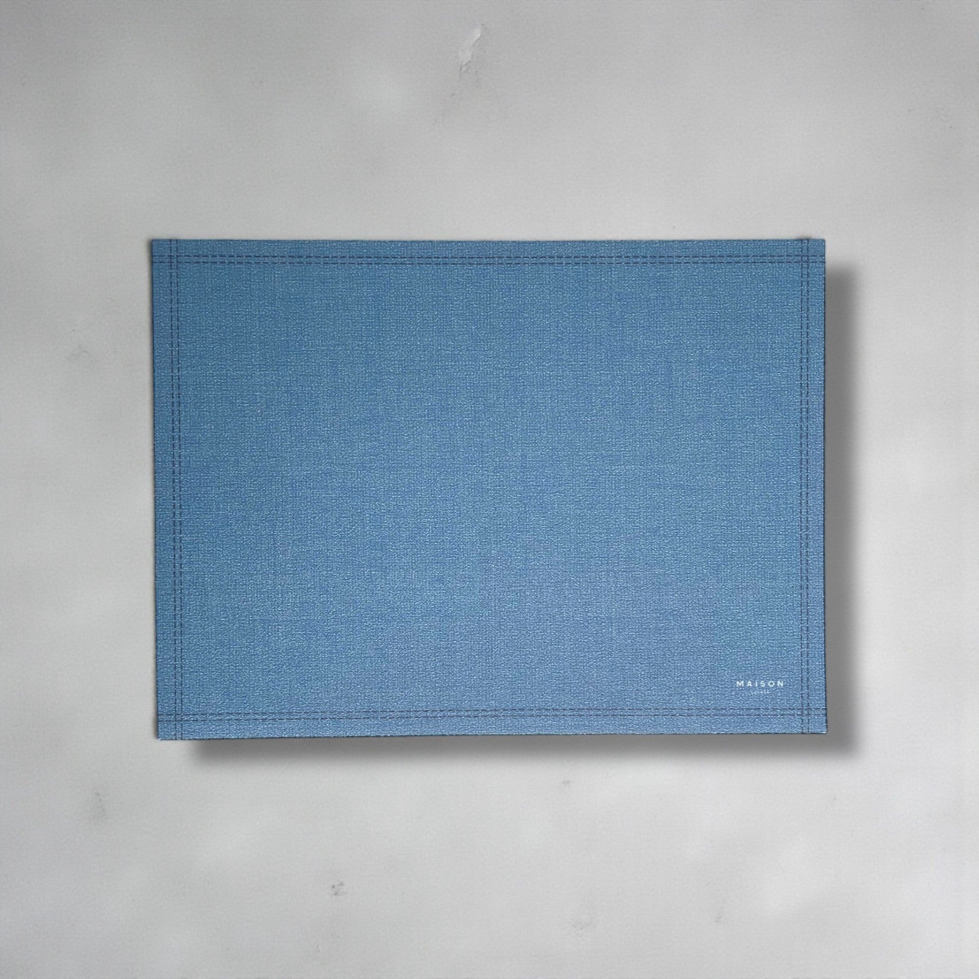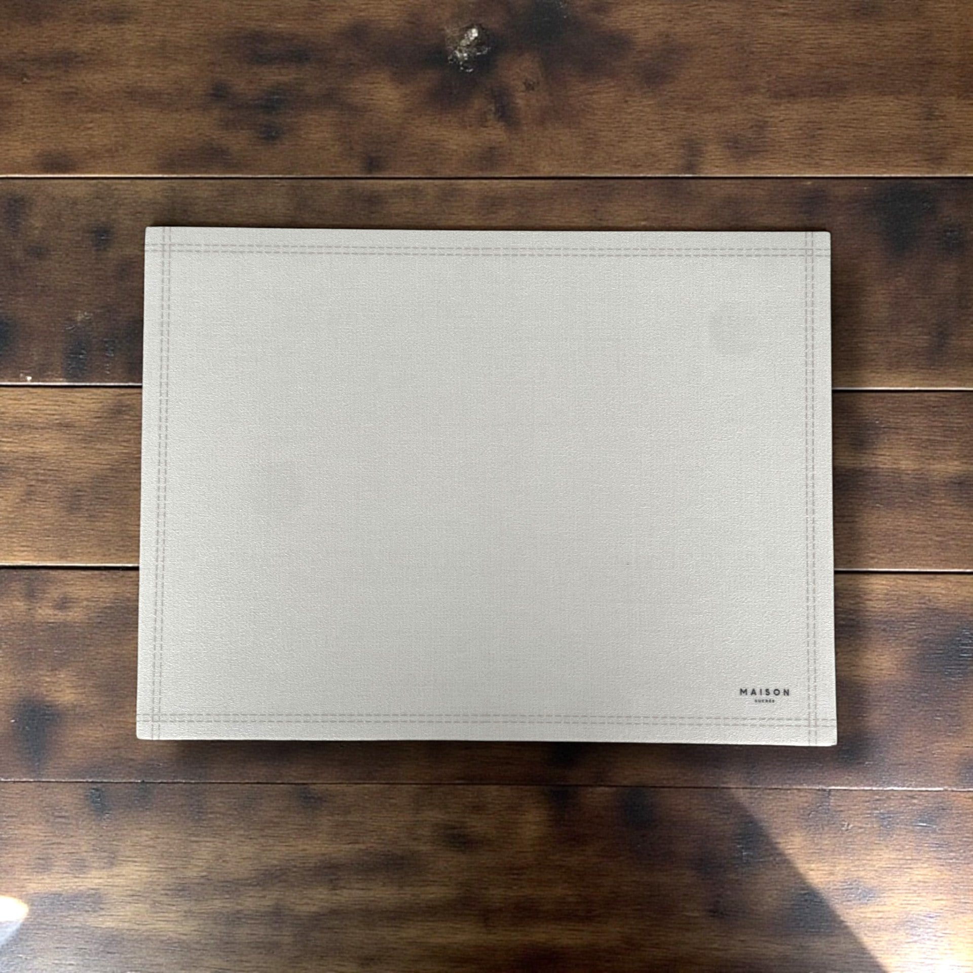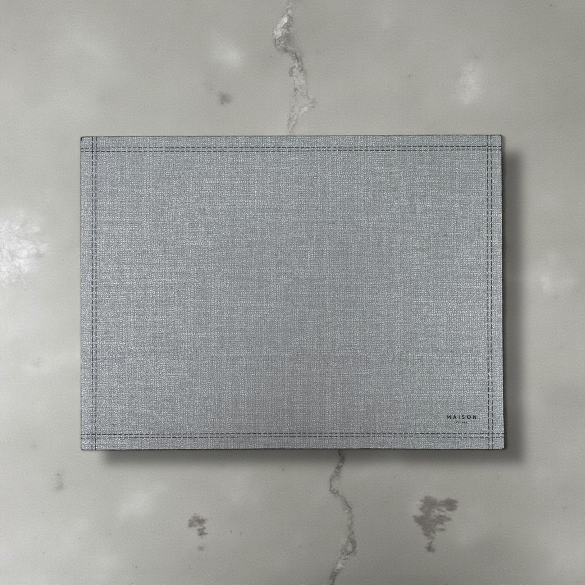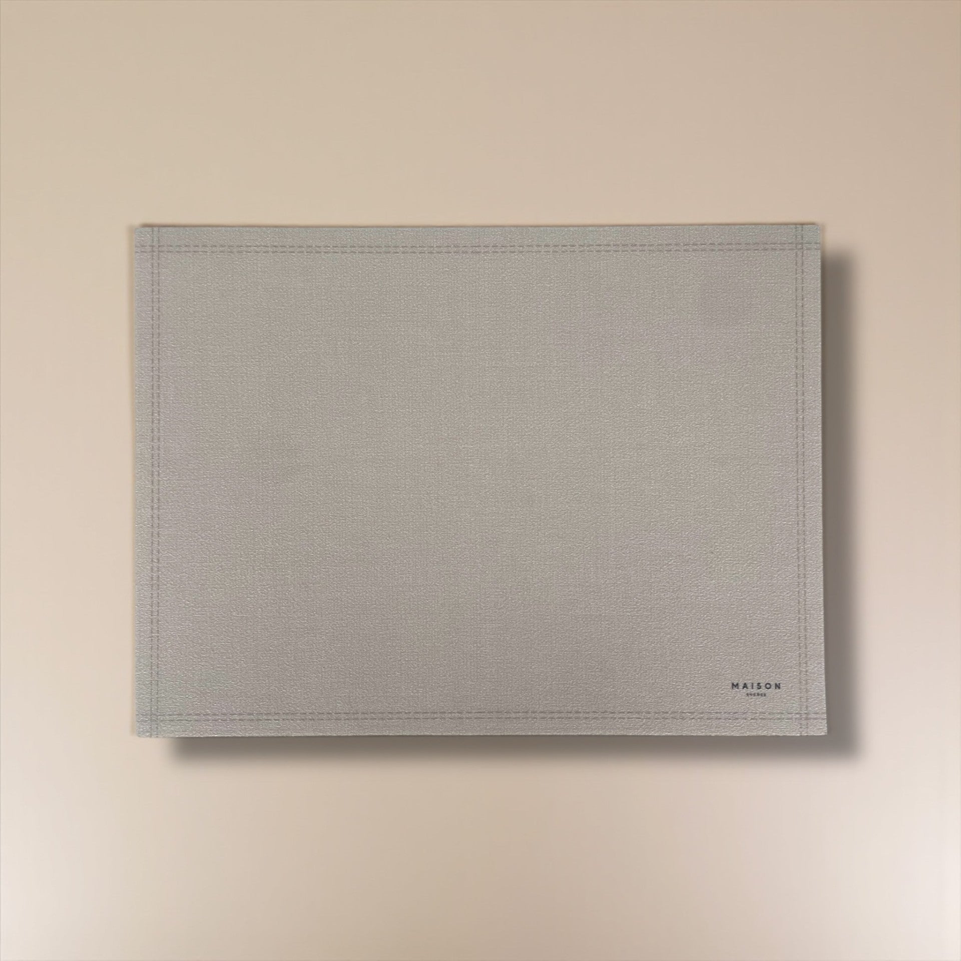 Il design tinta unita valorizza la tavola con sobrietà, mentre la texture effetto tessuto e la cornice stampata lungo il bordo donano un tocco ricercato e discreto.