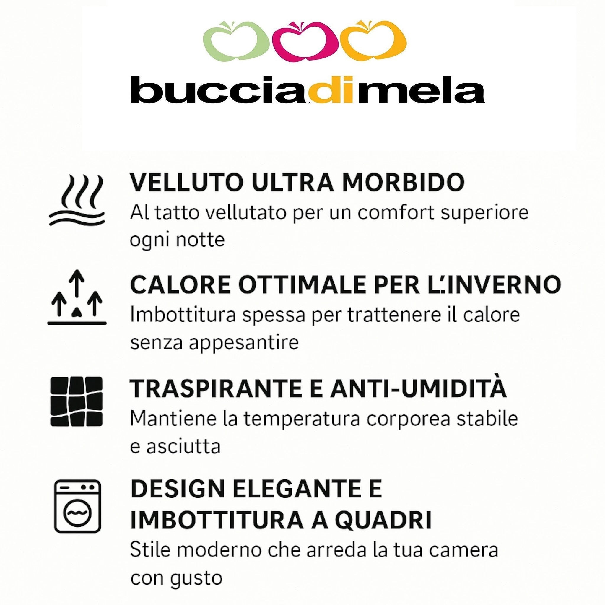 Trapunta invernale Letto singolo Buccia di Mela in velluto Art. Quadro